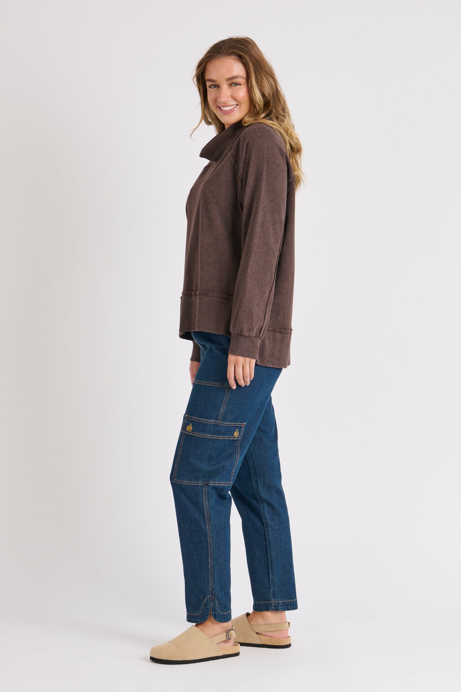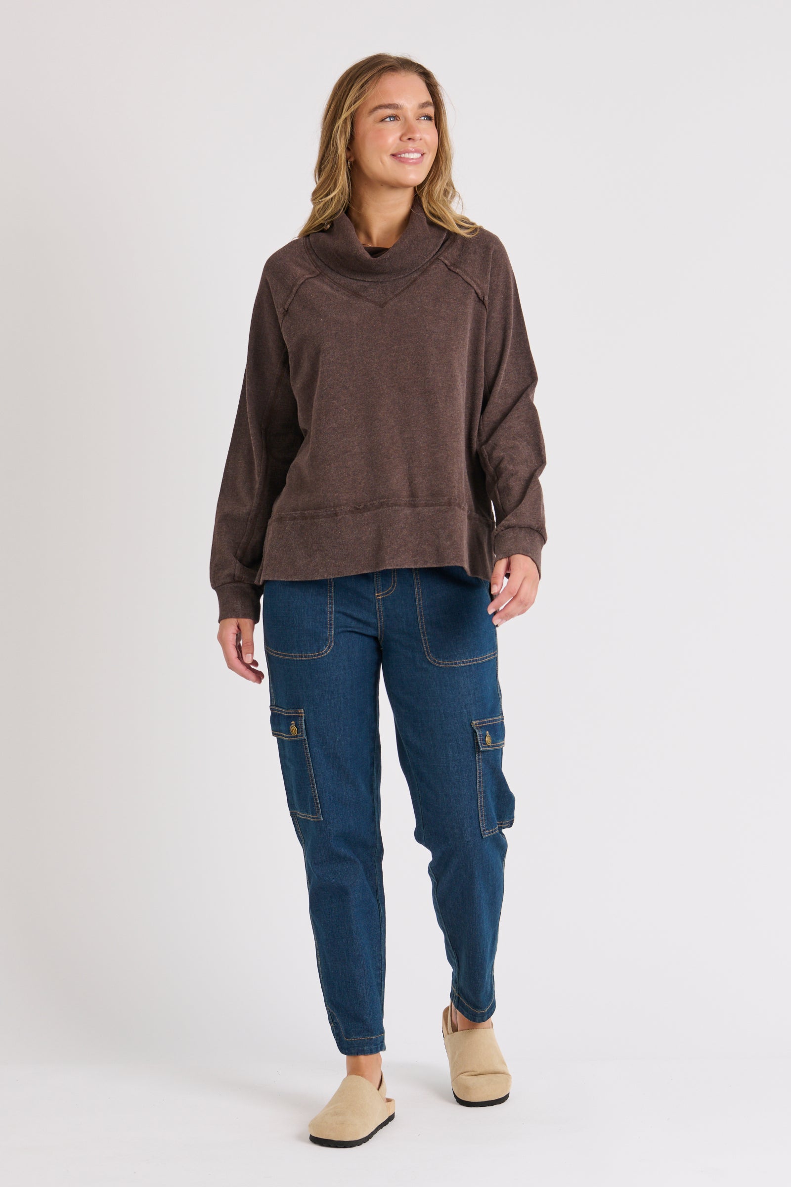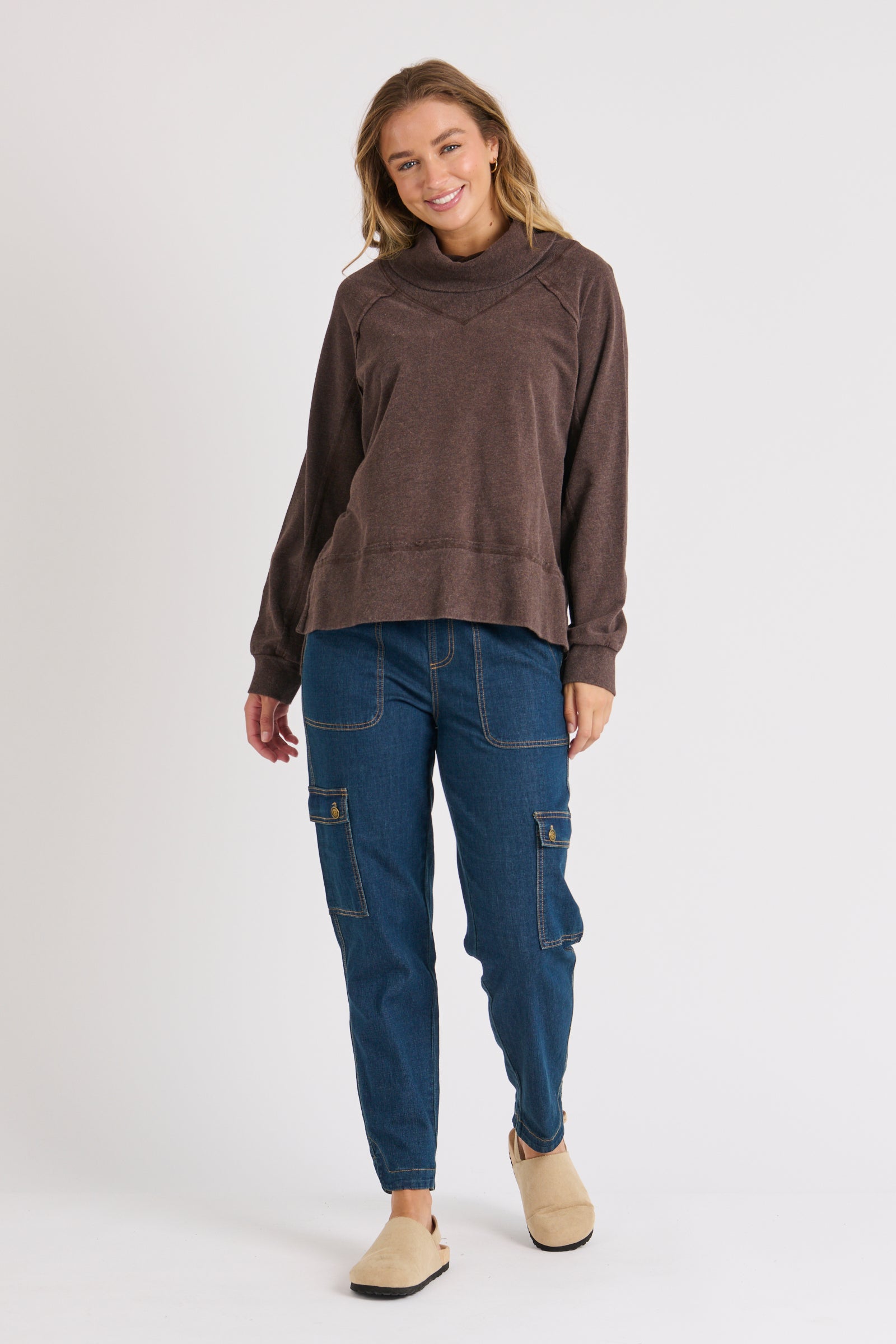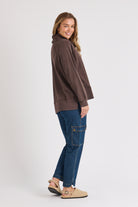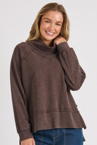 Roll Neck Drop Back Top - Chocolate