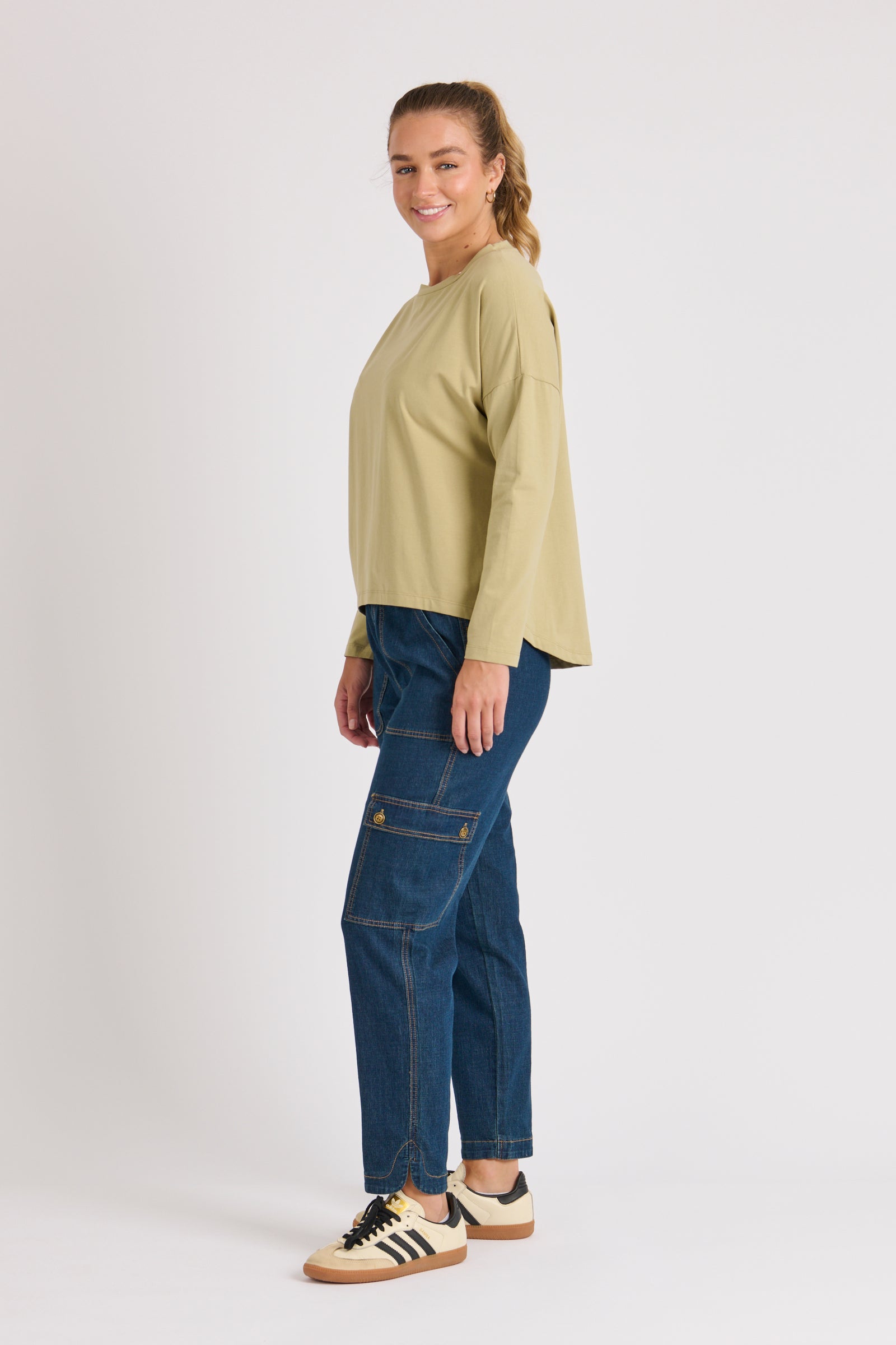 Drop Back Long Sleeve Tee - Sage