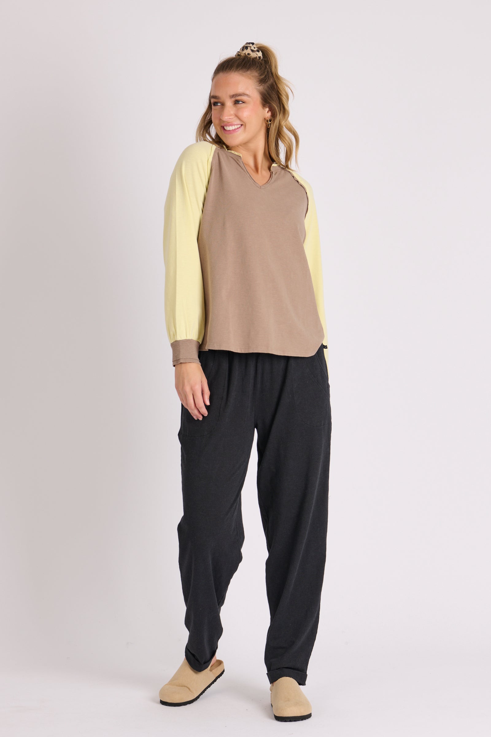 Fabrication: 80% Cotton 15% Polyester 5% Elastane Slub Jersey