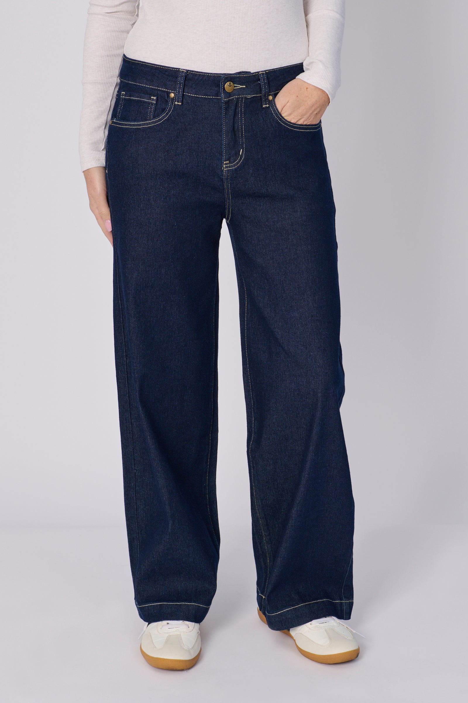 3/4 Sleeve Scoop Hem Tee - White/Navy Stripe