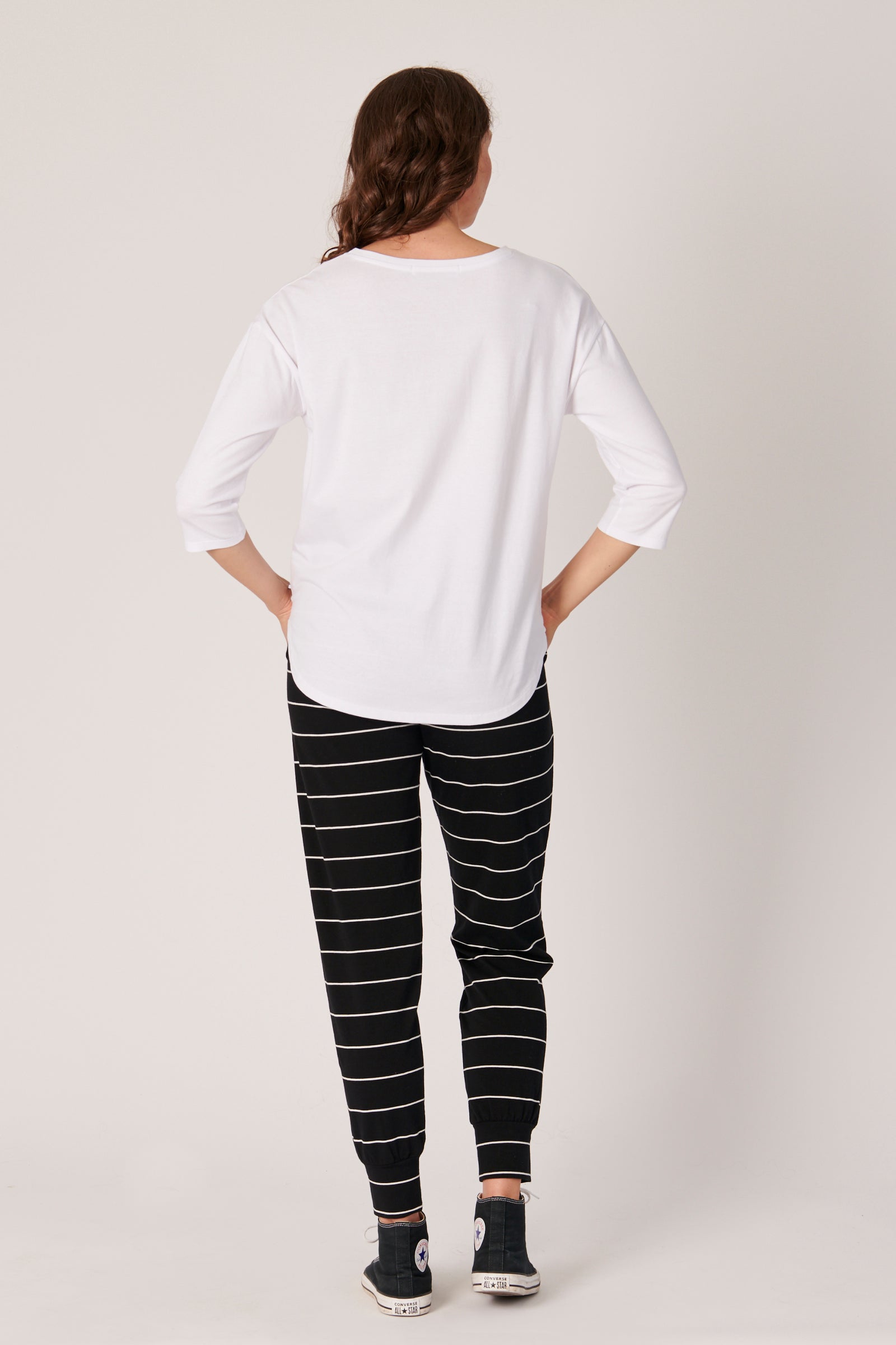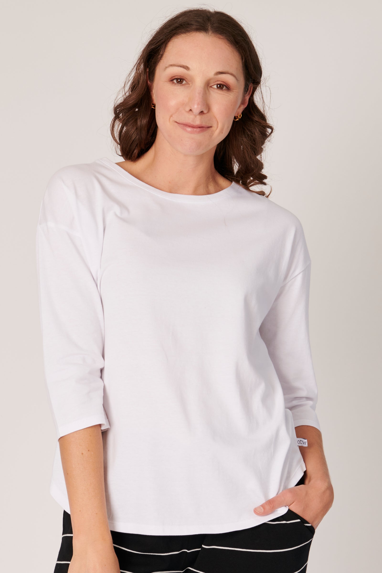 3/4 Sleeve Round Neck Tee - White