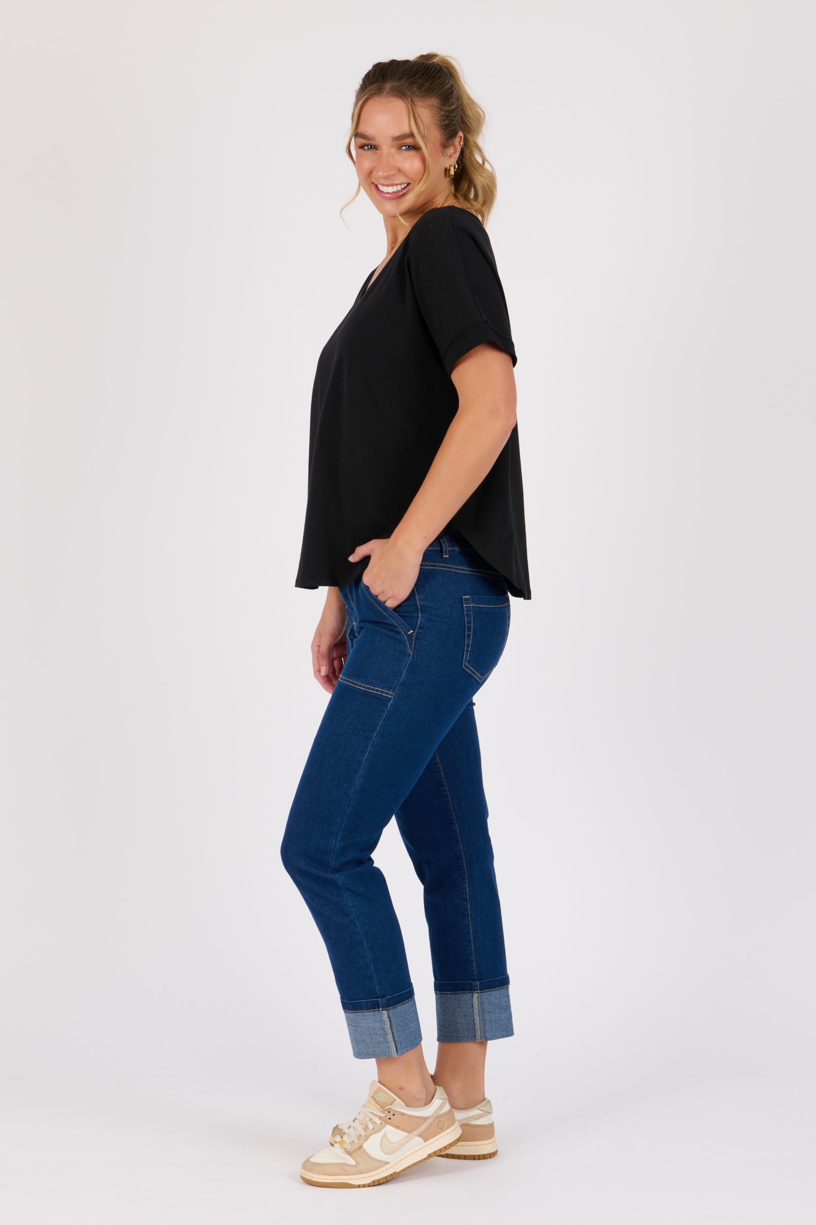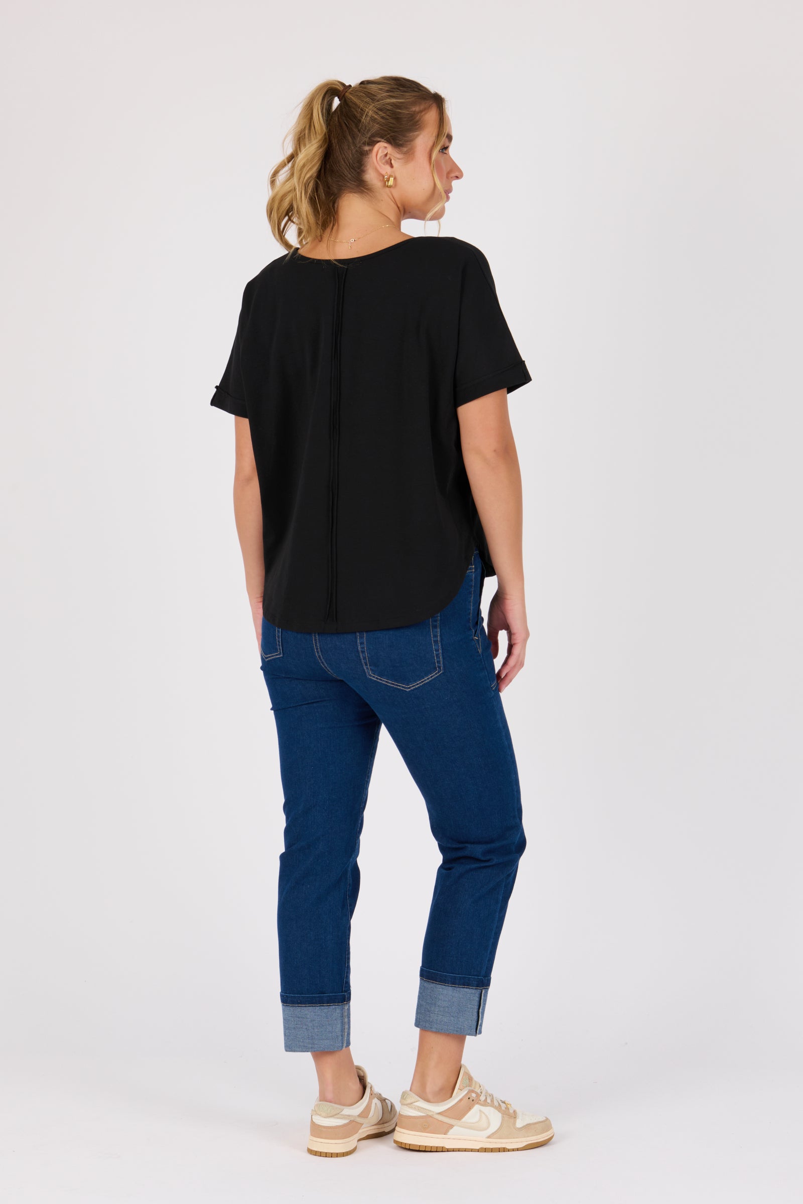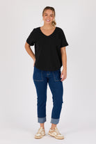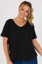 V-Neck Curve Hem Tee - Black