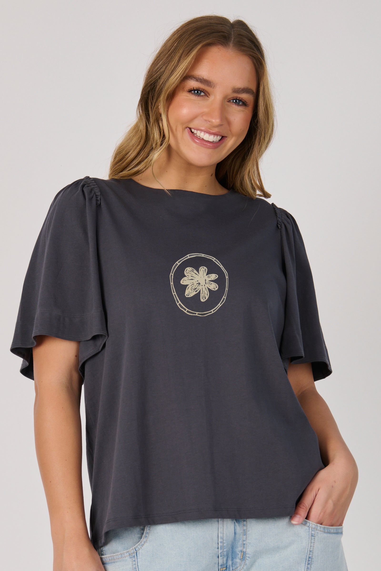 Raglan Sleeve Peasant Top - Black White Textured Stripe