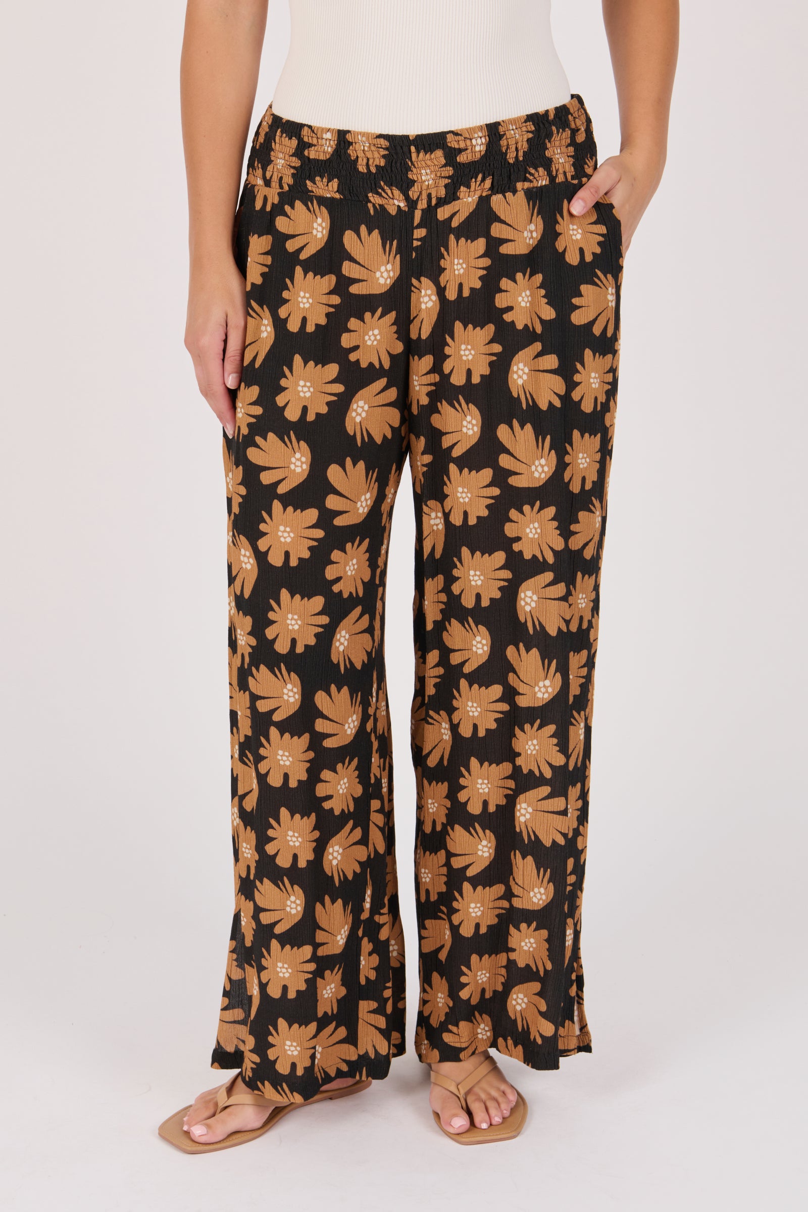 Shirred Waist Pant - Chocolate Flower