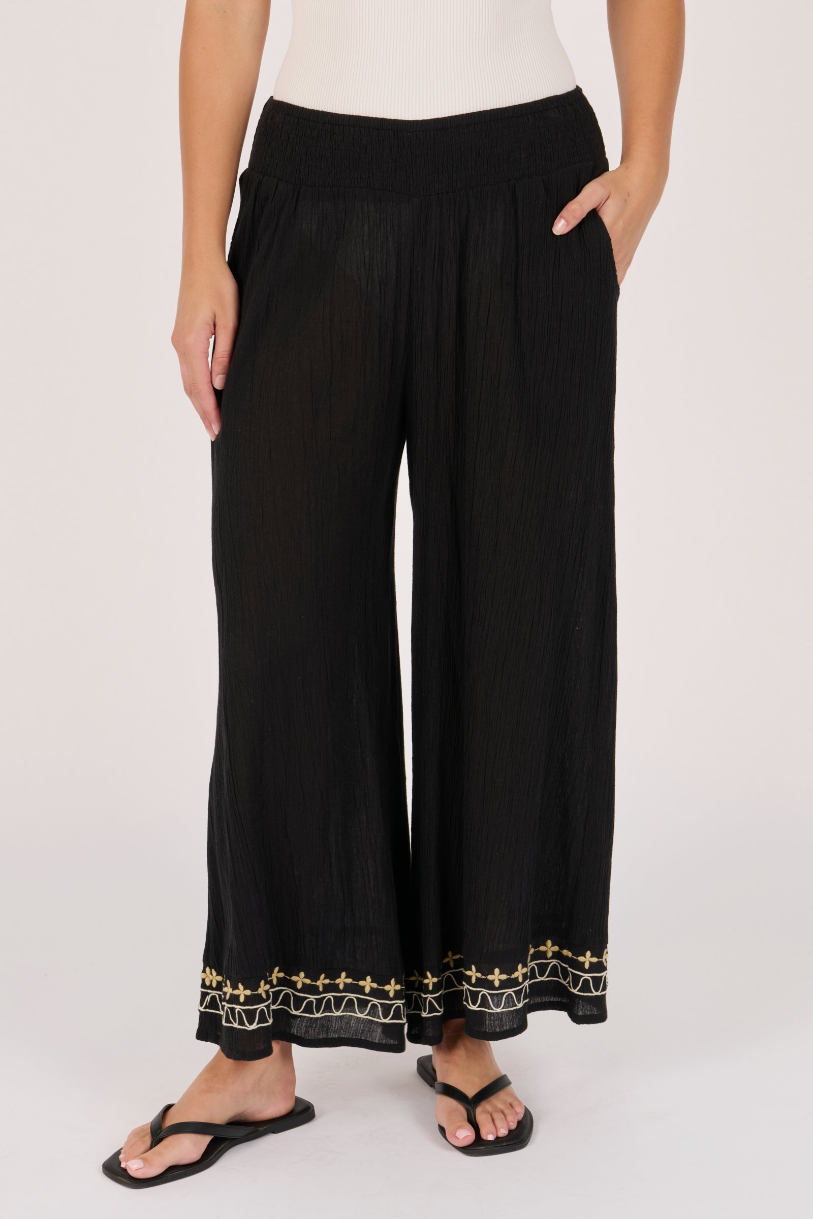 Shirred Waistband Pant - Black