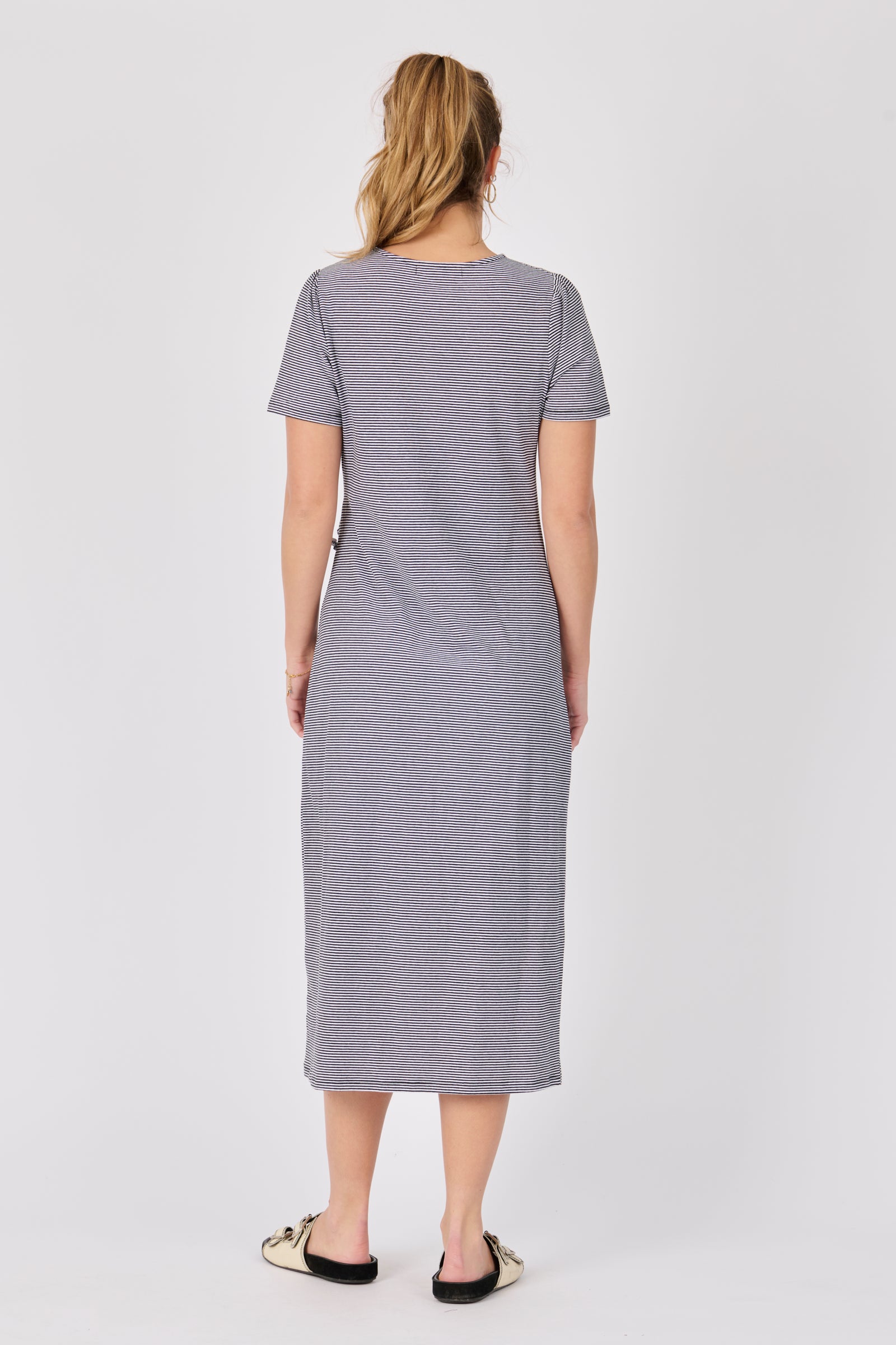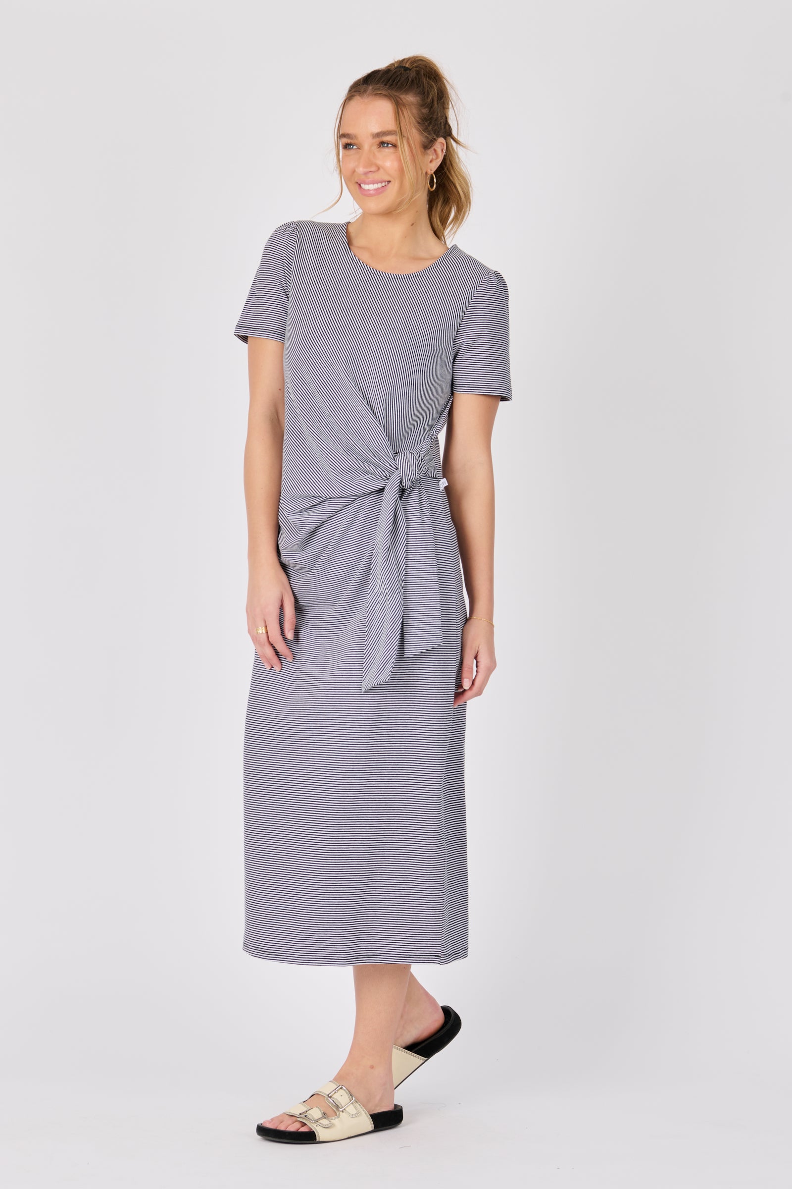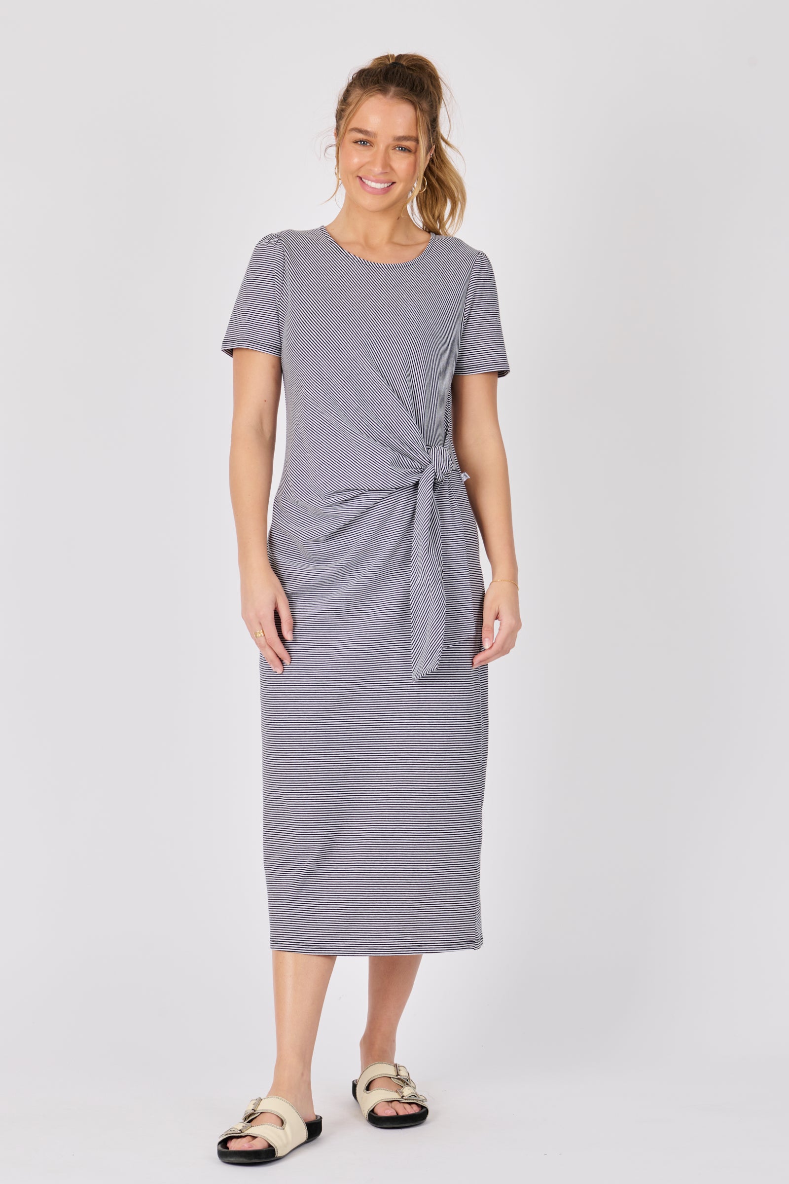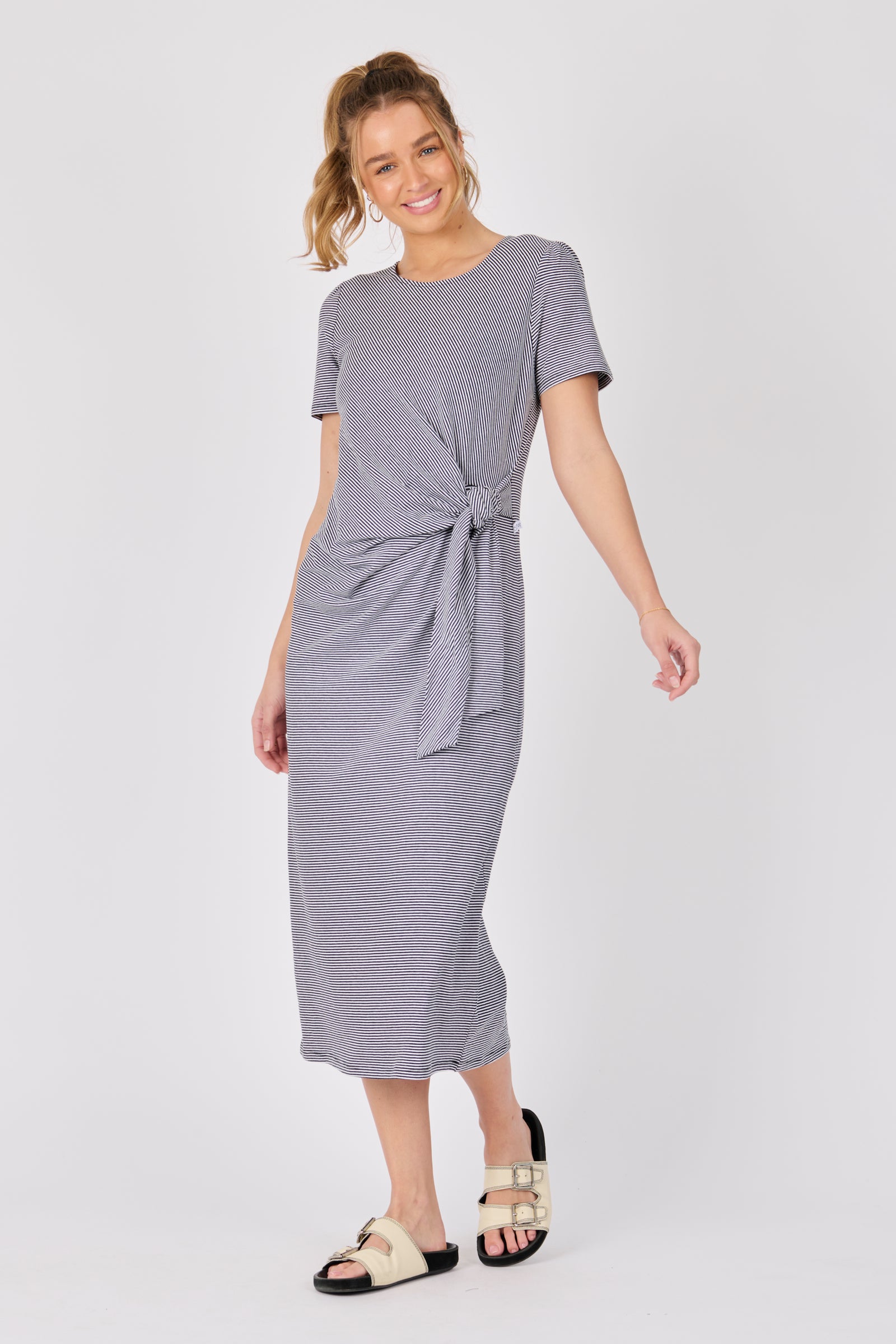 Tie Detail Midi Dress - Black/White Stripe