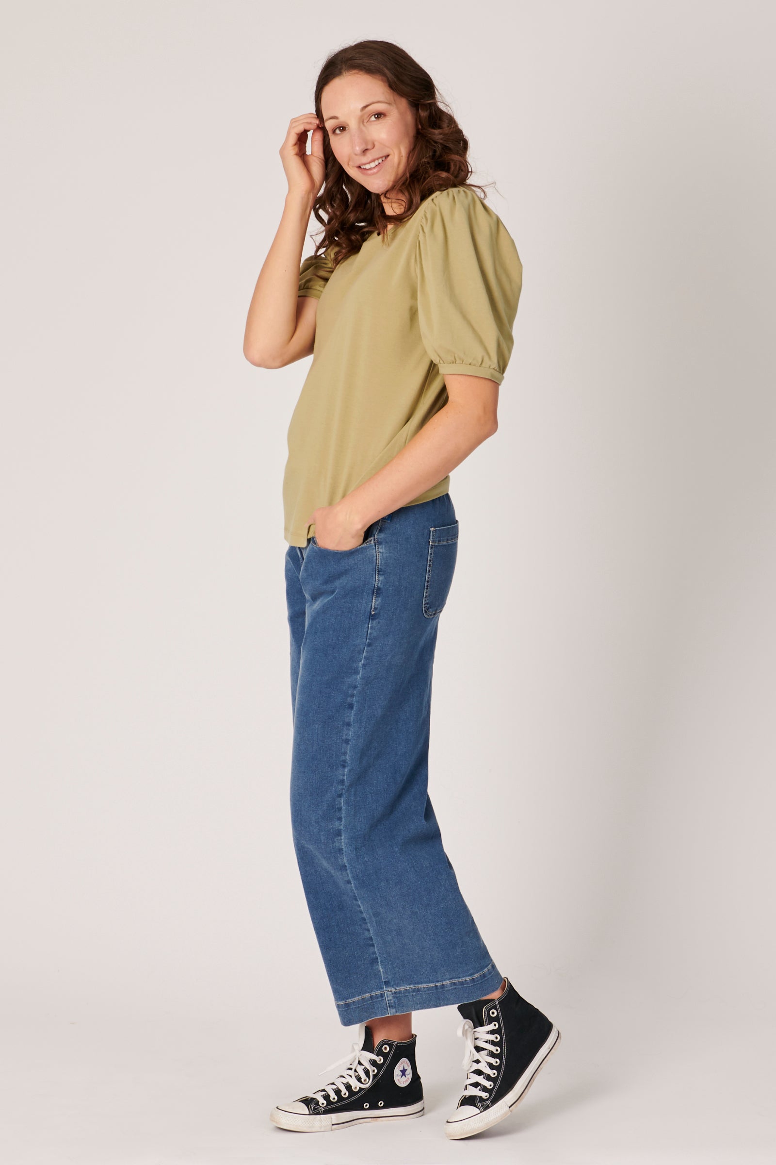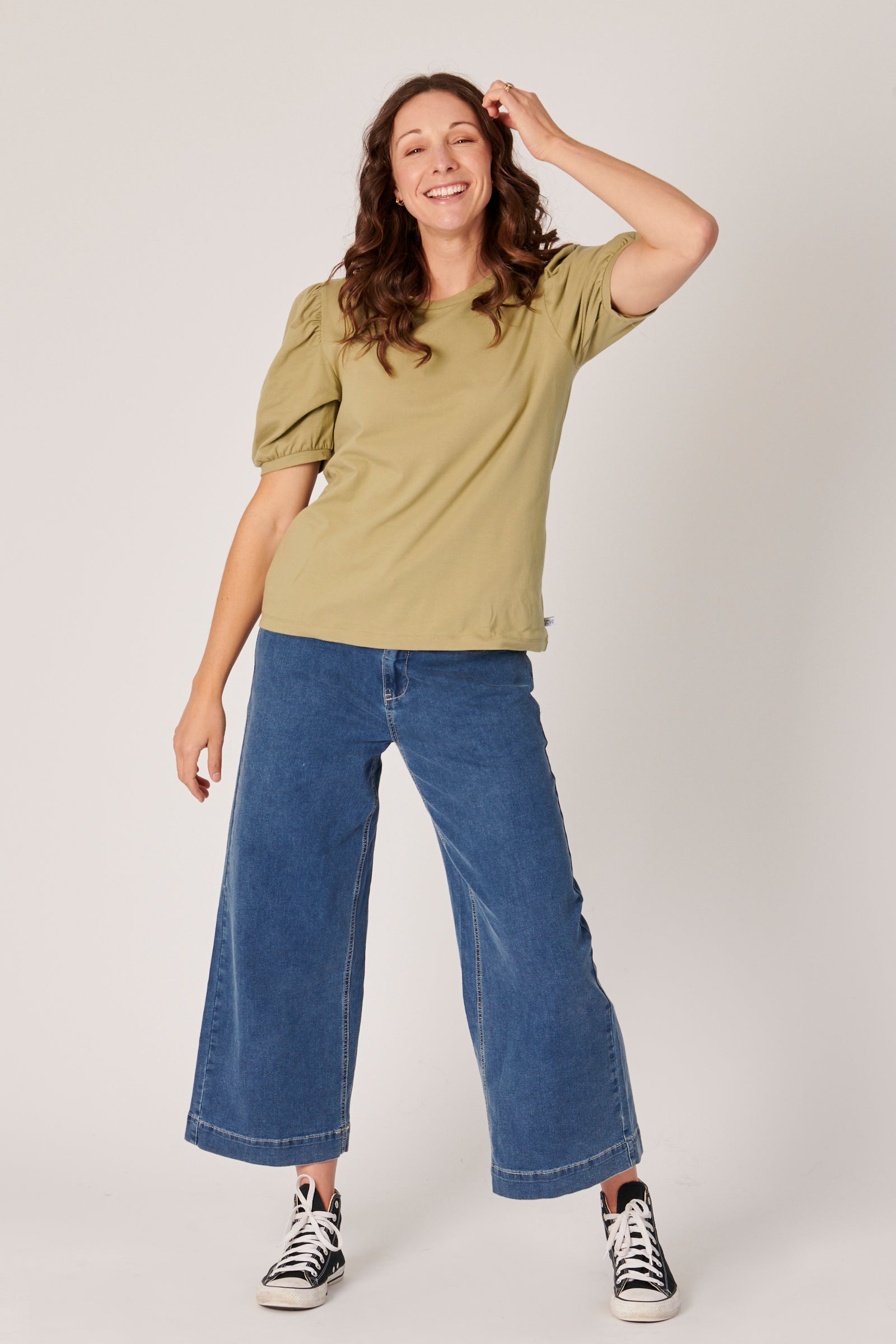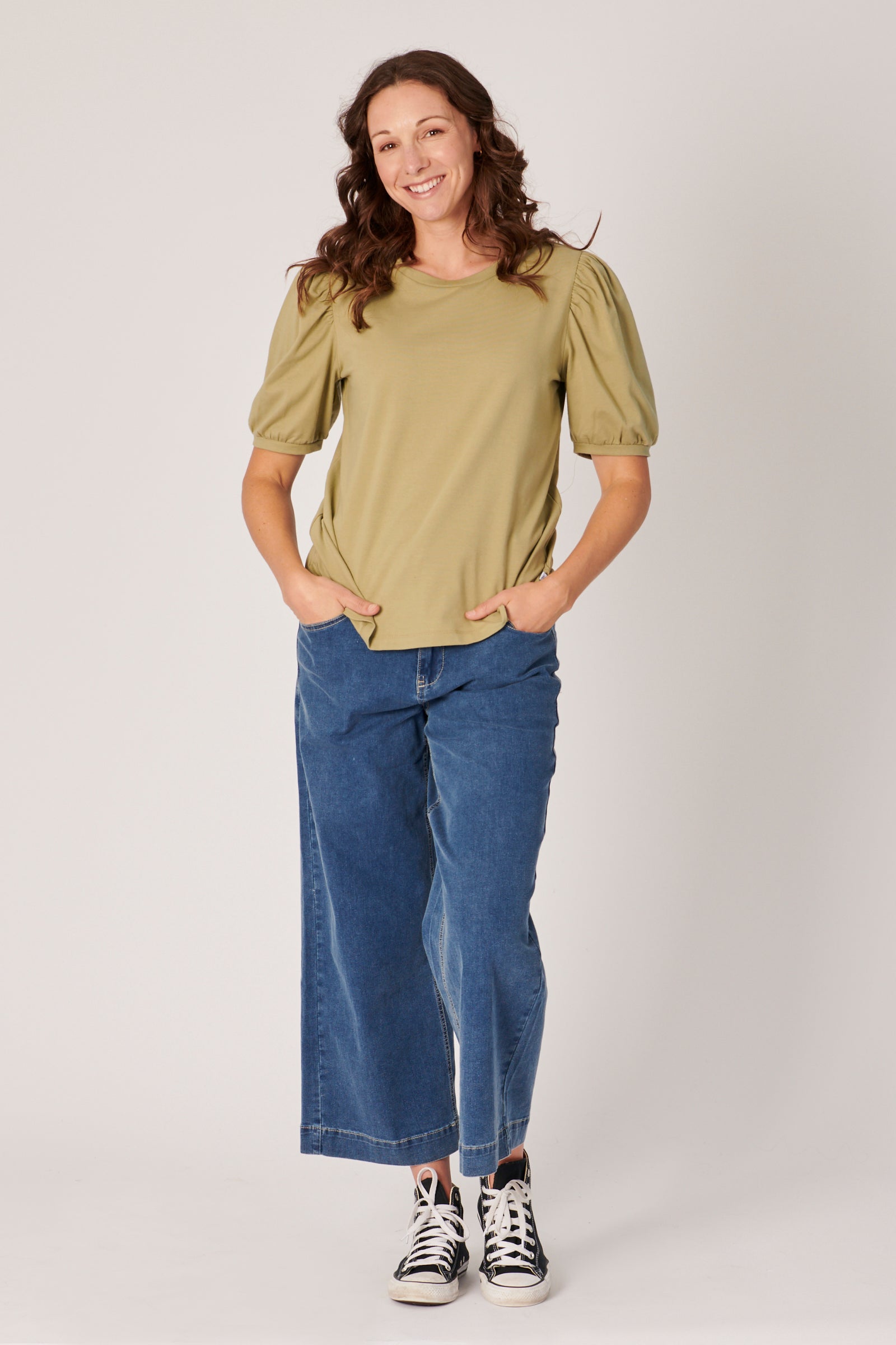 Puff Sleeve Tee - Khaki
