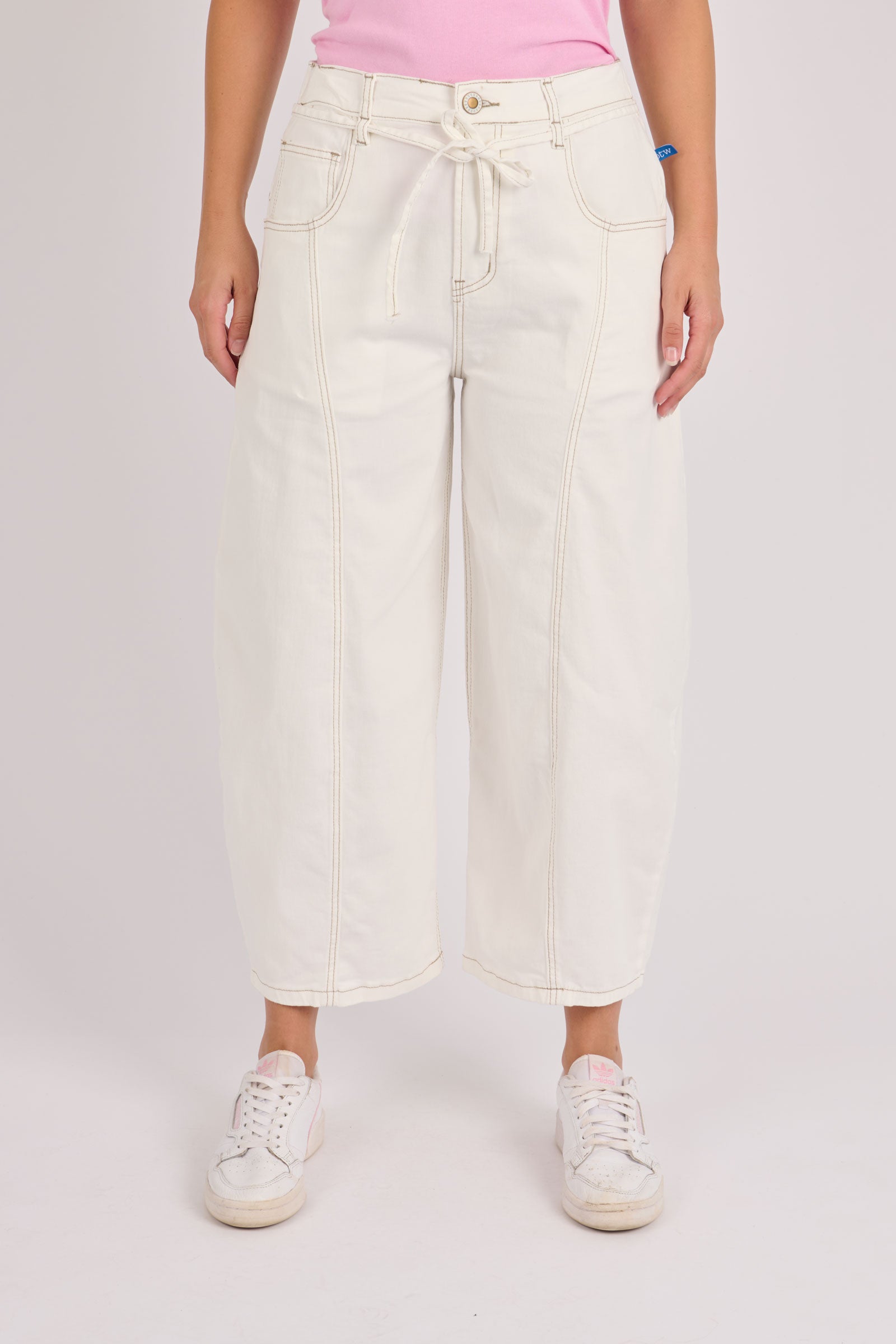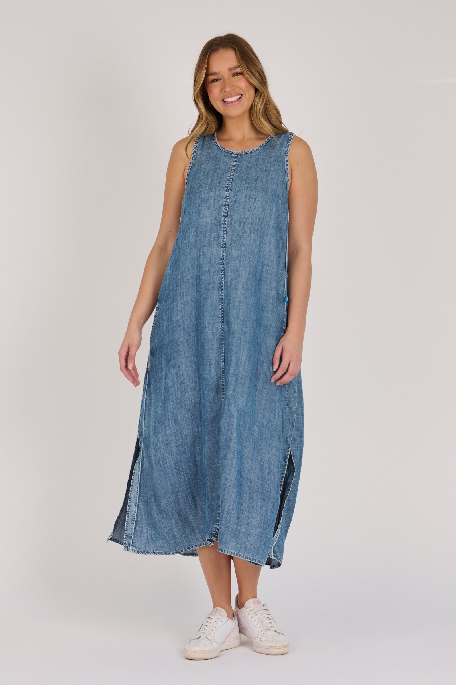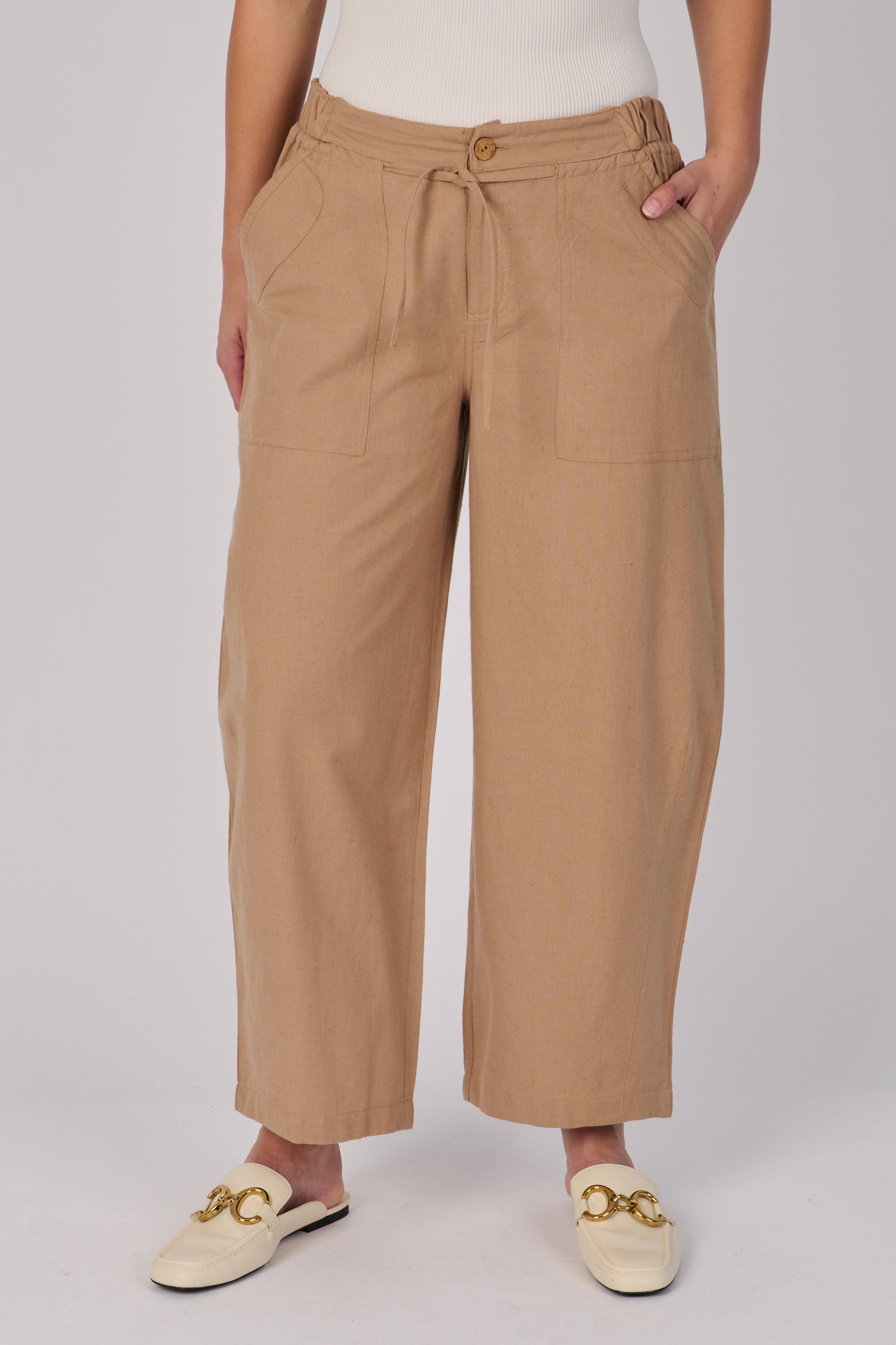 V-Neck Curve Hem Tee - Acorn/White Stripe