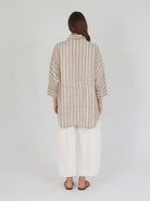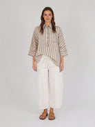 The Oversized Shirt in Natural Stripe is an effortless wardrobe staple designed for relaxed, everyday wear. Crafted from breathable 100% cotton, this style features a softly structured oversized silhouette with subtle vertical stripes that feel timeless and easy to style. Finished with a button-through front and wide sleeves, it’s perfect worn loose over pants, half-tucked, or layered open over a tank for a laid-back summer look.|