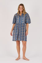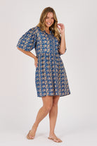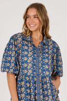 The Bubble Sleeve Dress in Navy Floral is crafted from lightweight 100% Viscose for a soft, breathable feel. Designed with a button-through front, gathered waist seam, and statement bubble sleeves, this dress offers easy, everyday style with a feminine touch. The navy floral print brings timeless charm, perfect for pairing with sandals or slides for relaxed summer days.