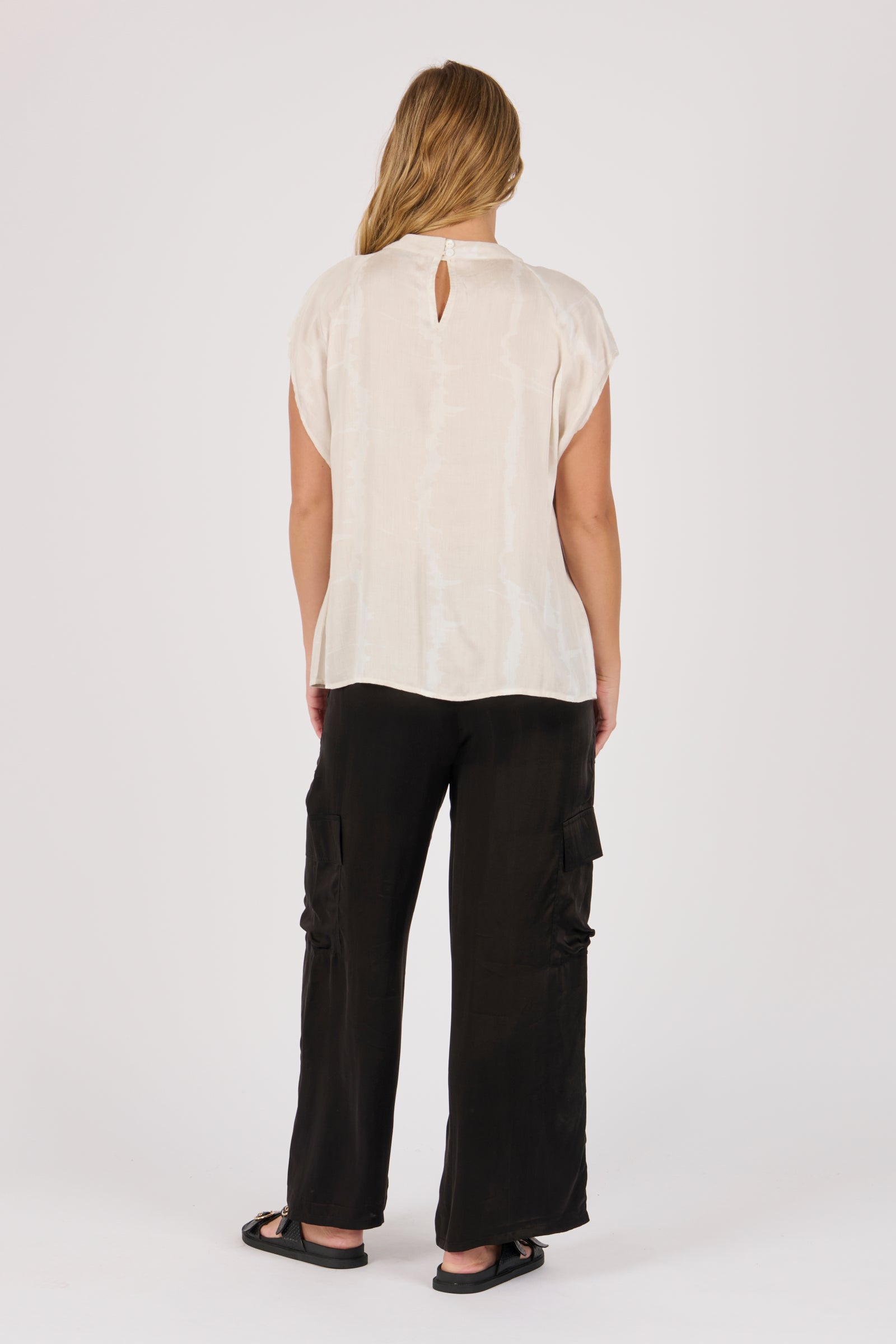 Elegant and effortless, the Pleat Neckline Blouse in Gardenia adds a touch of sophistication to everyday style. Crafted from luxurious 100% viscose satin twill, it features a subtle sheen and soft drape that flows beautifully on the body. Designed with a gently gathered pleat neckline and relaxed silhouette, this blouse transitions seamlessly from work to weekend. Pair it with tailored pants, linen shorts, or denim for a timeless, elevated look.