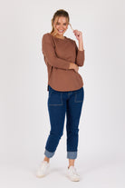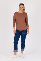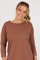 3/4 Sleeve Scoop Hem Tee - Acorn
