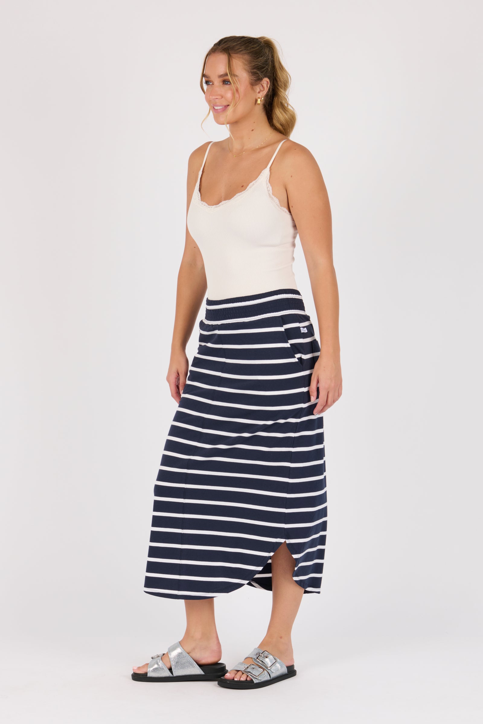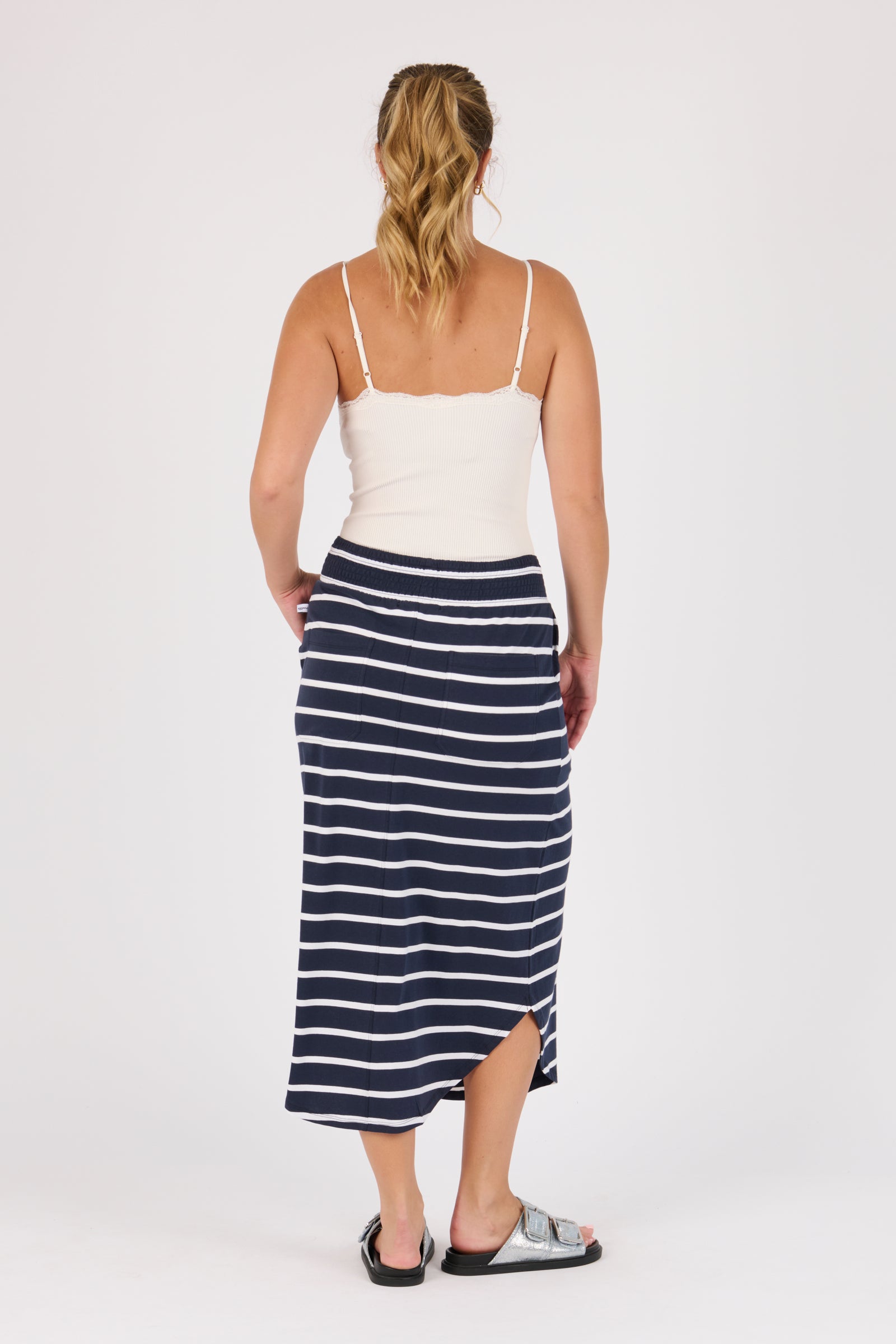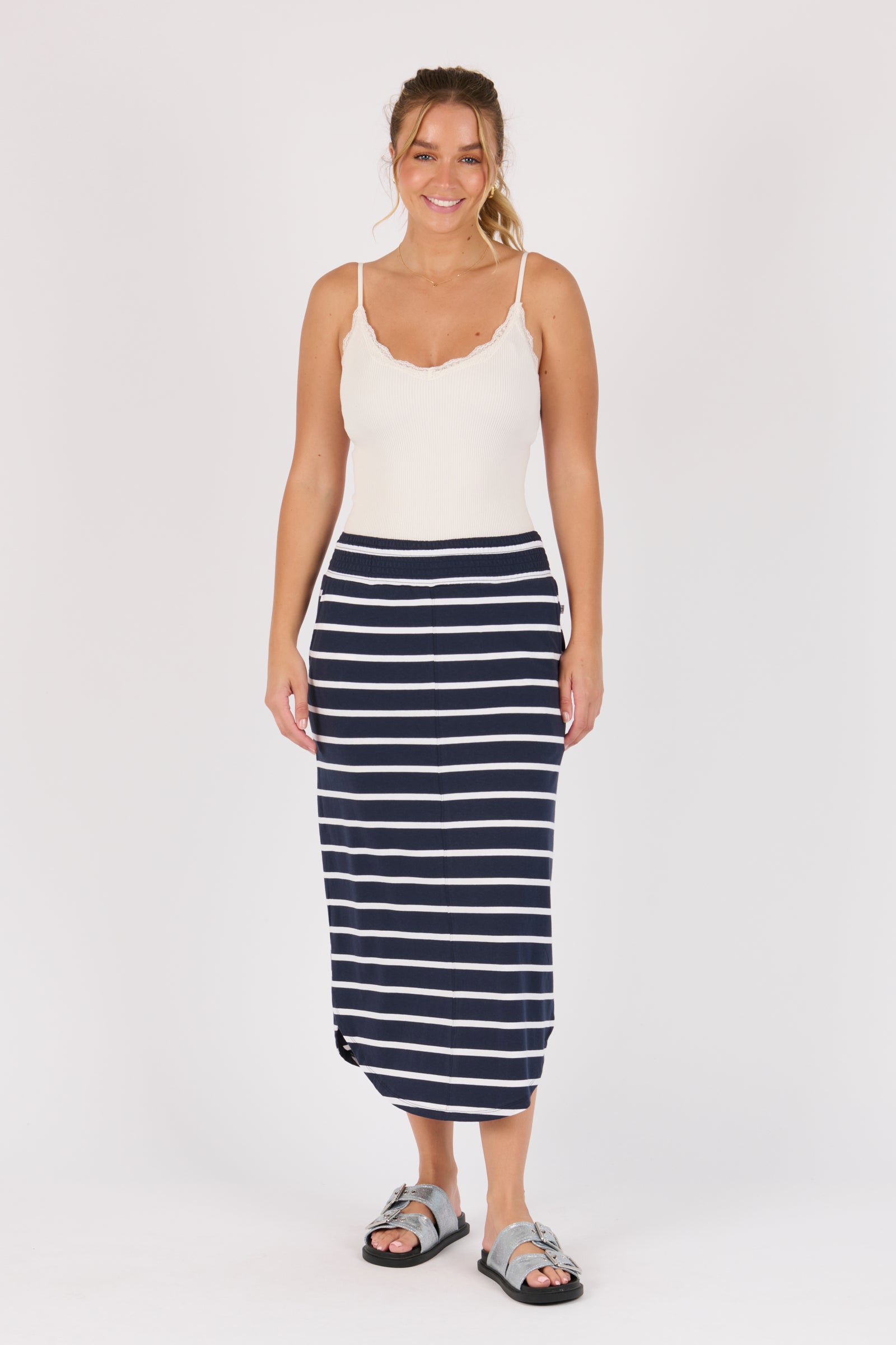 Scoop Hem Midi Skirt - Navy/White Stripe