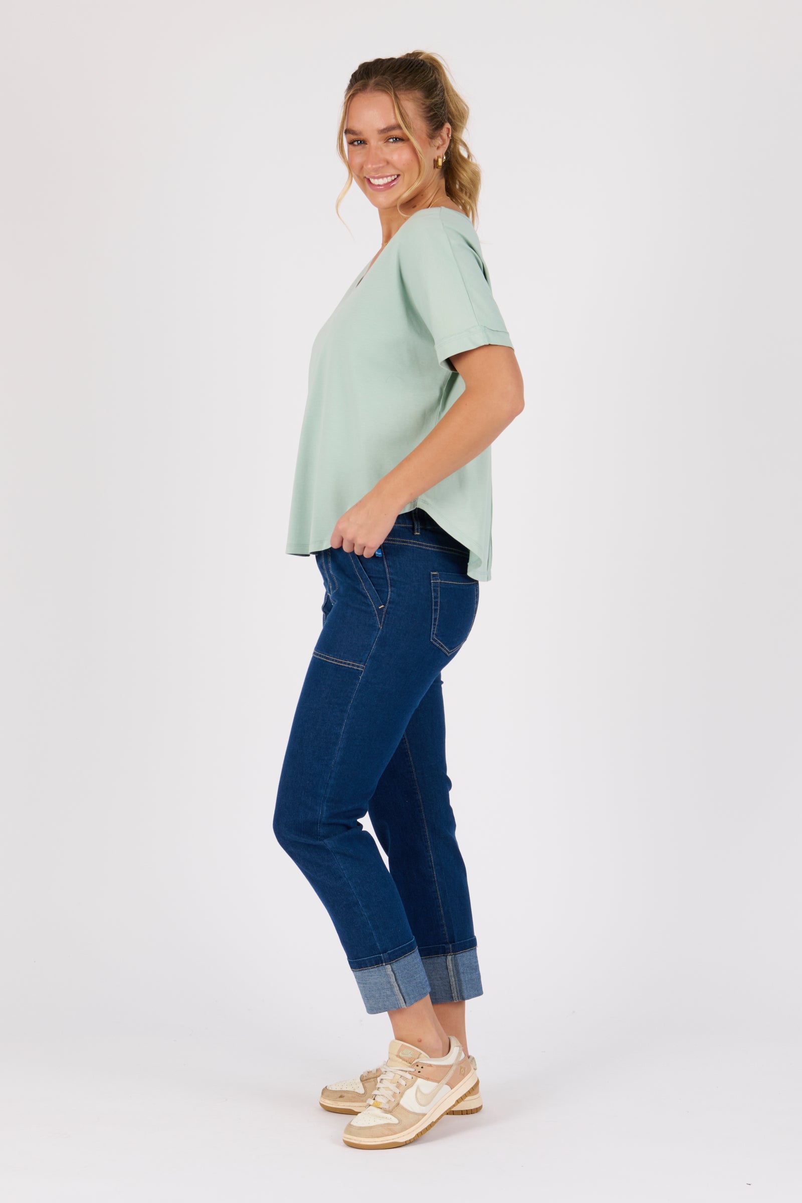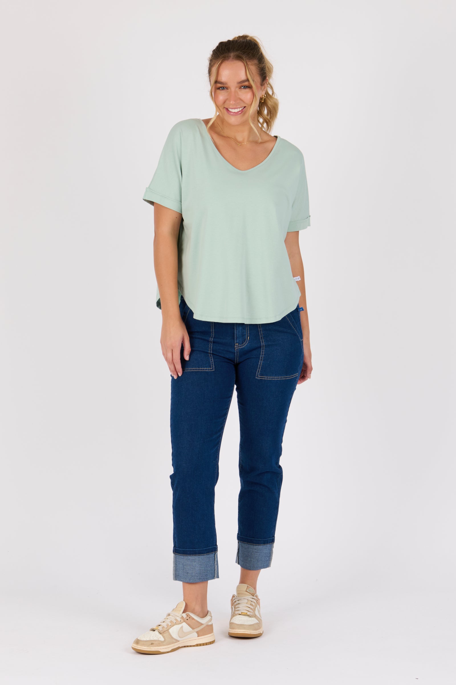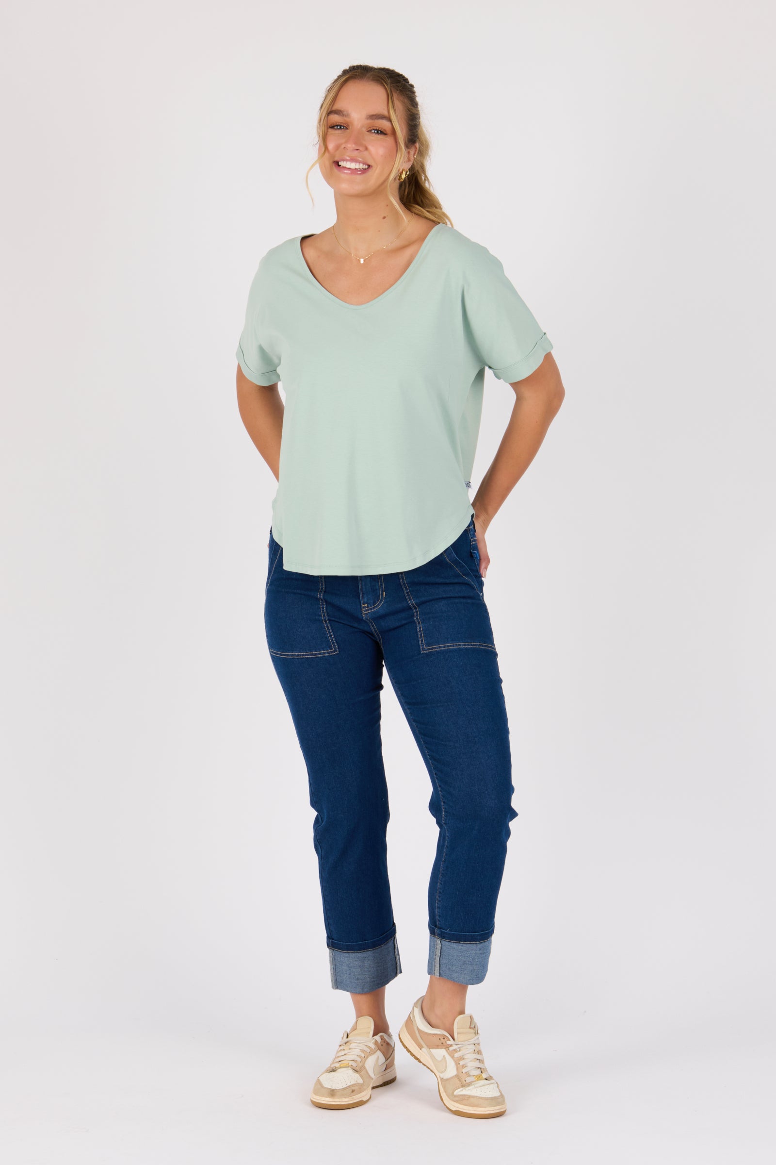 V-Neck Curve Hem Tee - Sea Green