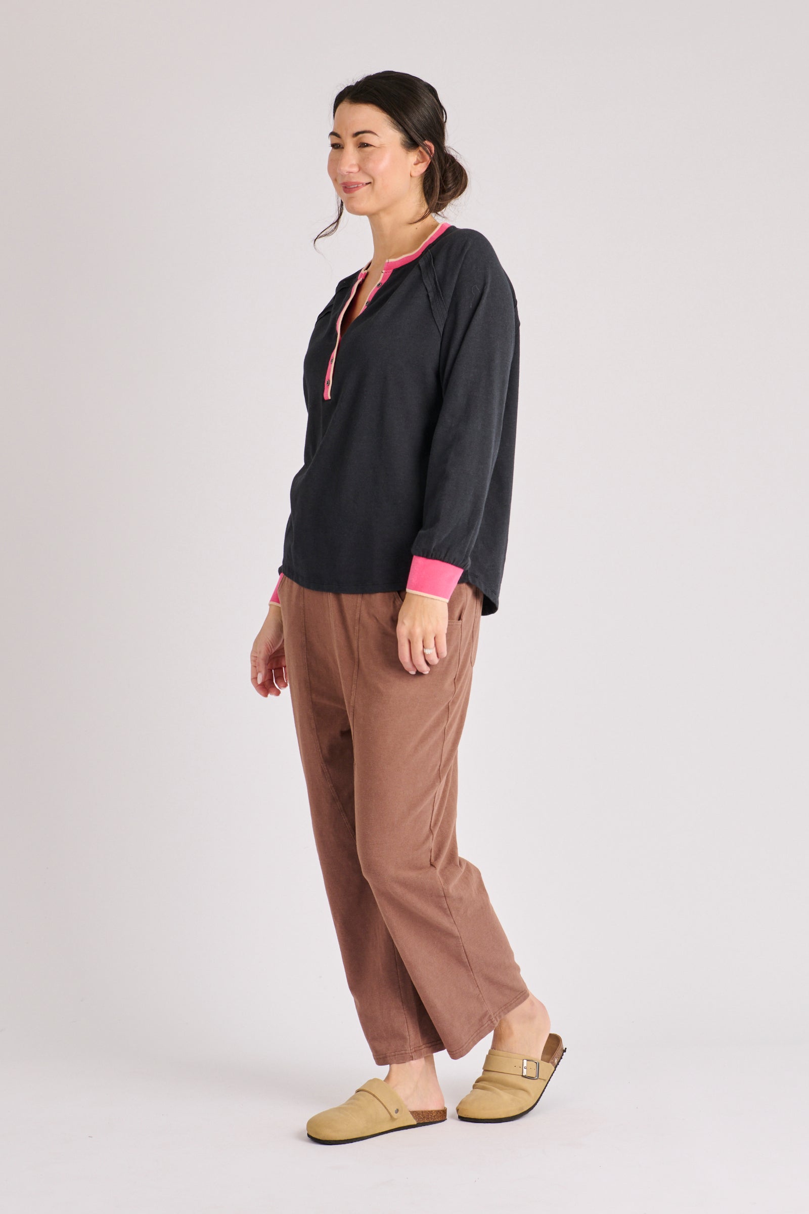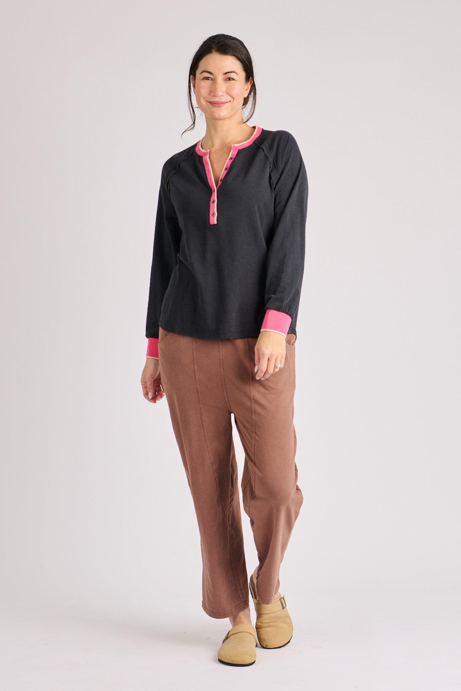 Design: Relaxed long sleeve Henley silhouette.