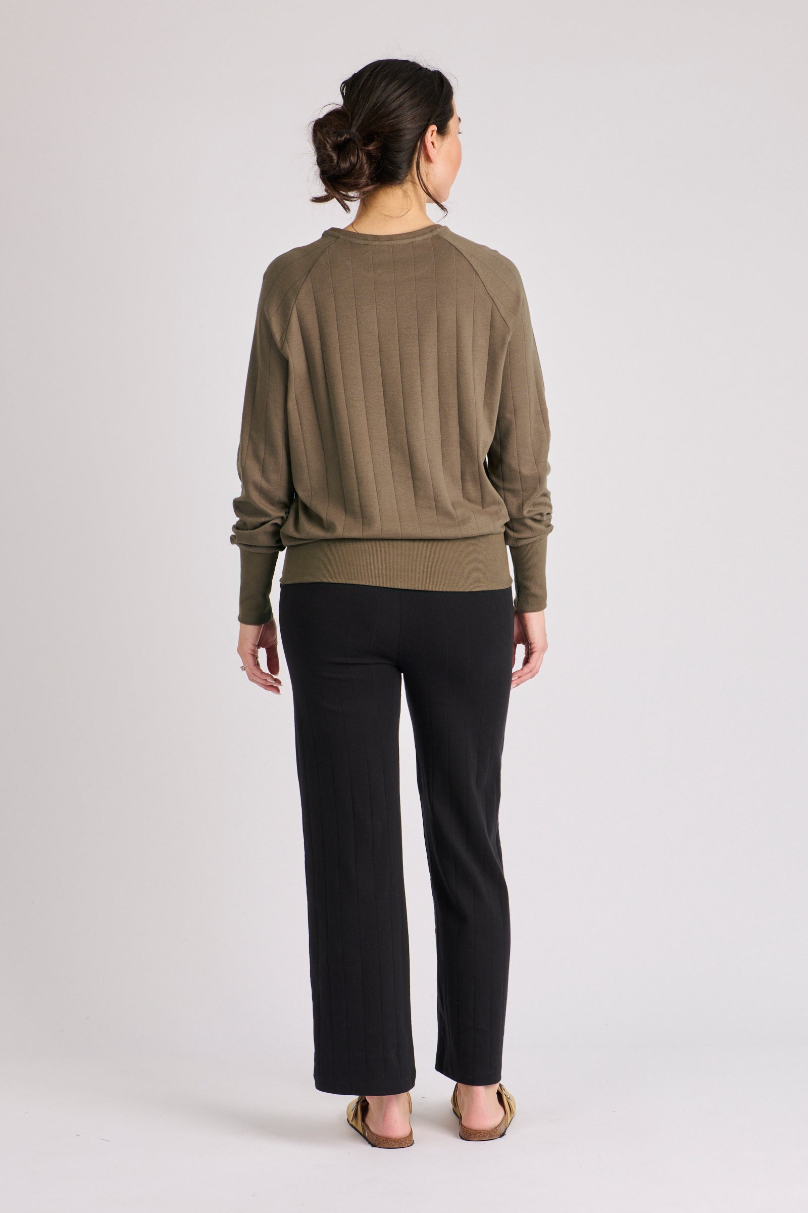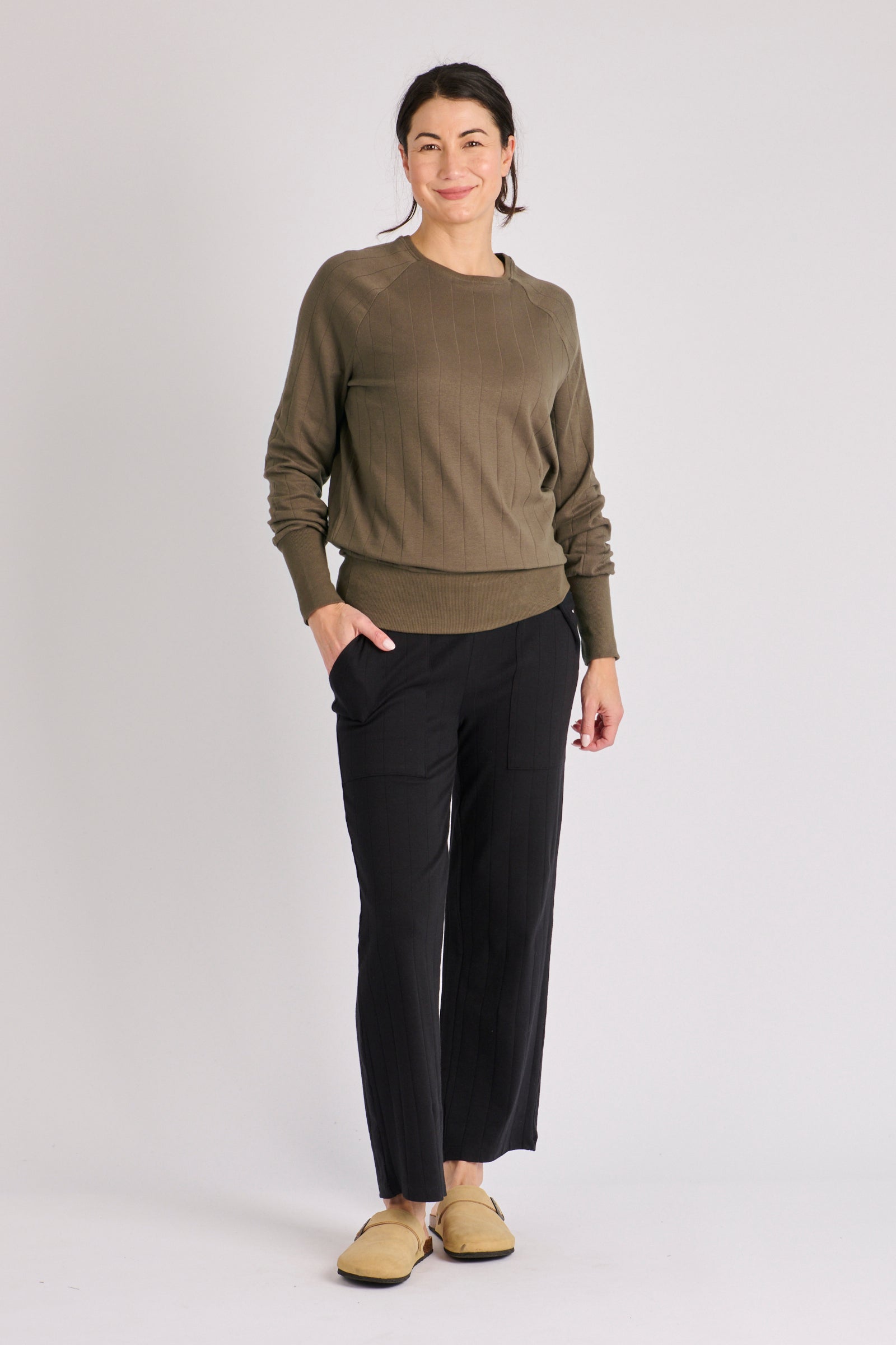 Details: Soft rib texture, fitted cuffs and softly gathered hemline.