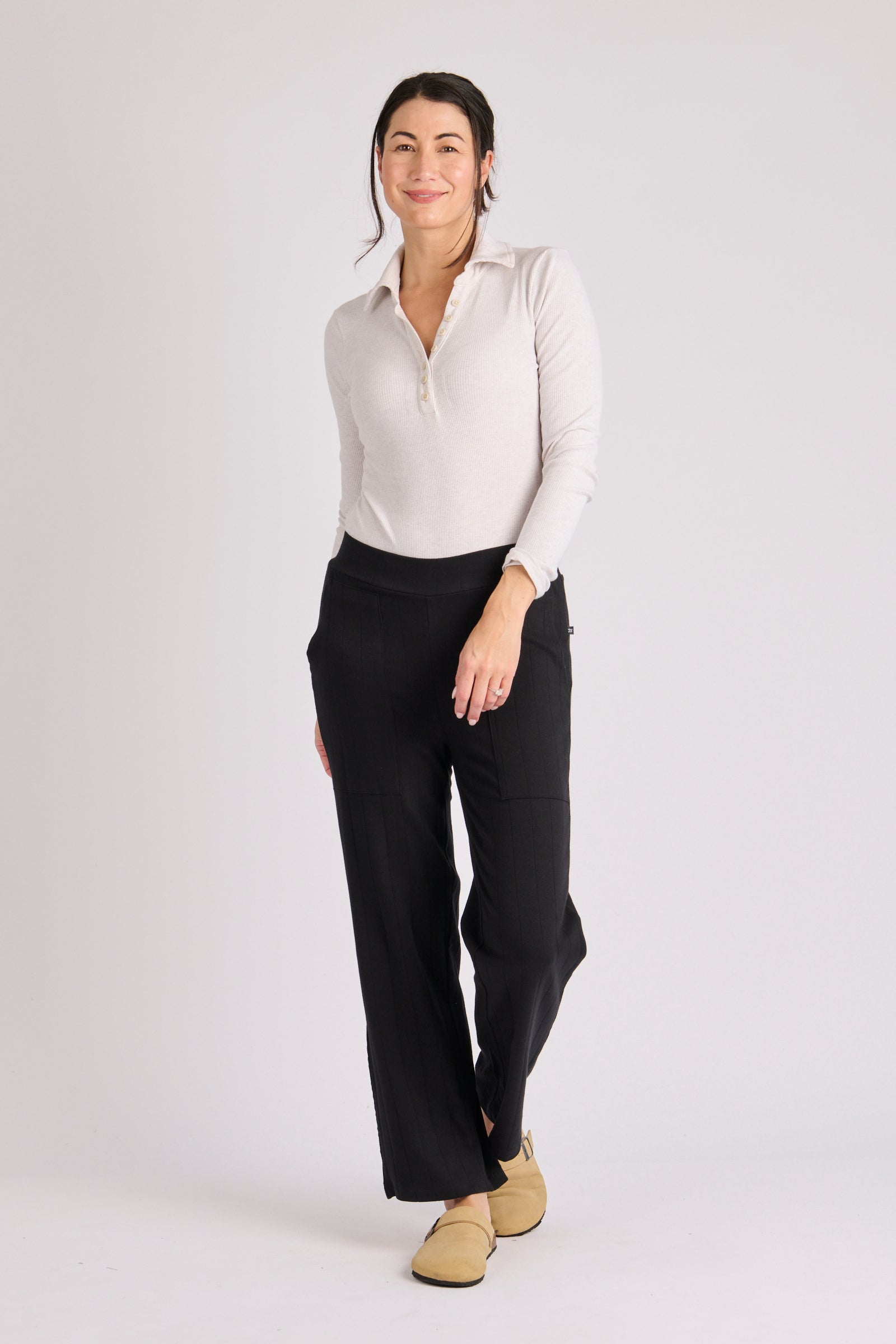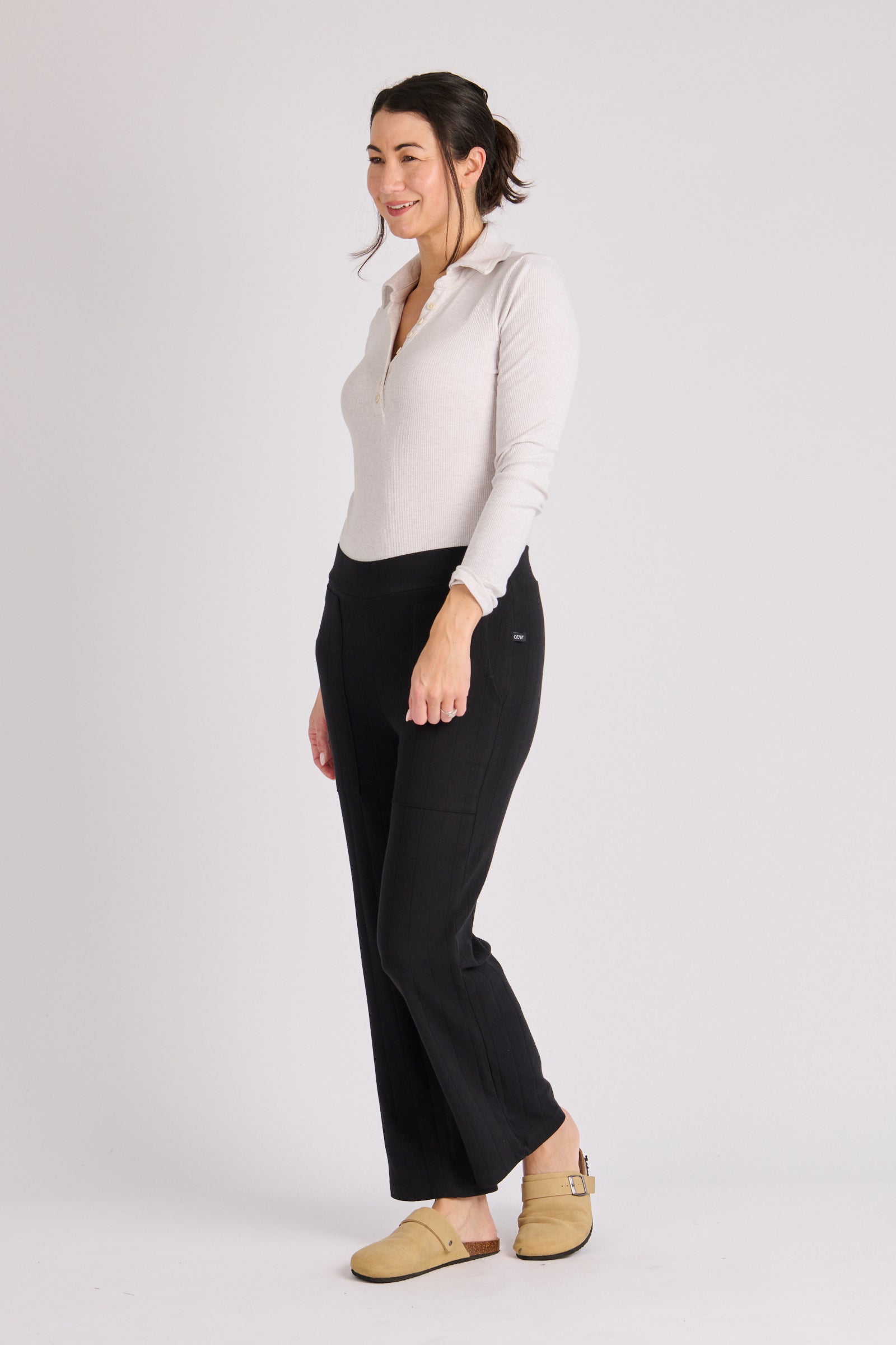 The Rib Flare Pant delivers comfort with a refined edge. Crafted in a soft stretch rib, the subtle flare leg elongates the silhouette while maintaining an effortless feel. Designed for all-day wear, they pair seamlessly with matching rib tops.