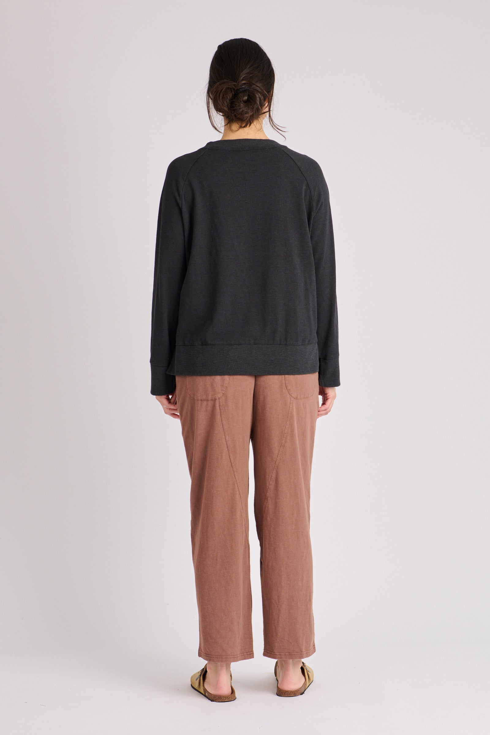 Design: Relaxed long sleeve silhouette with stepped hem.
