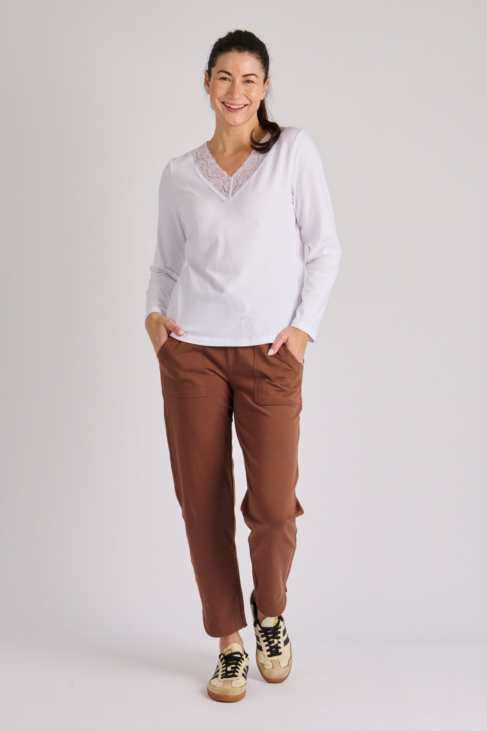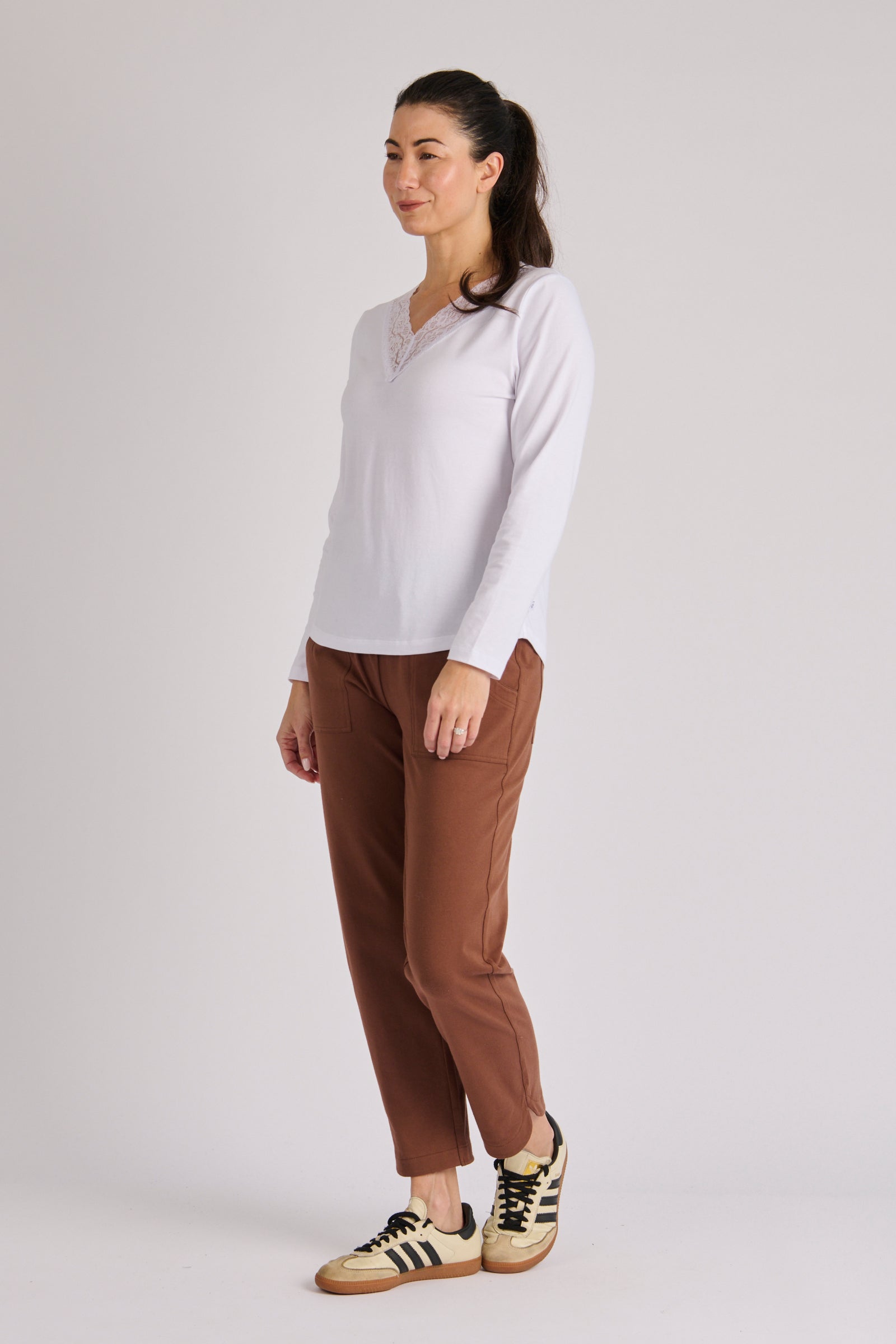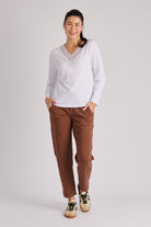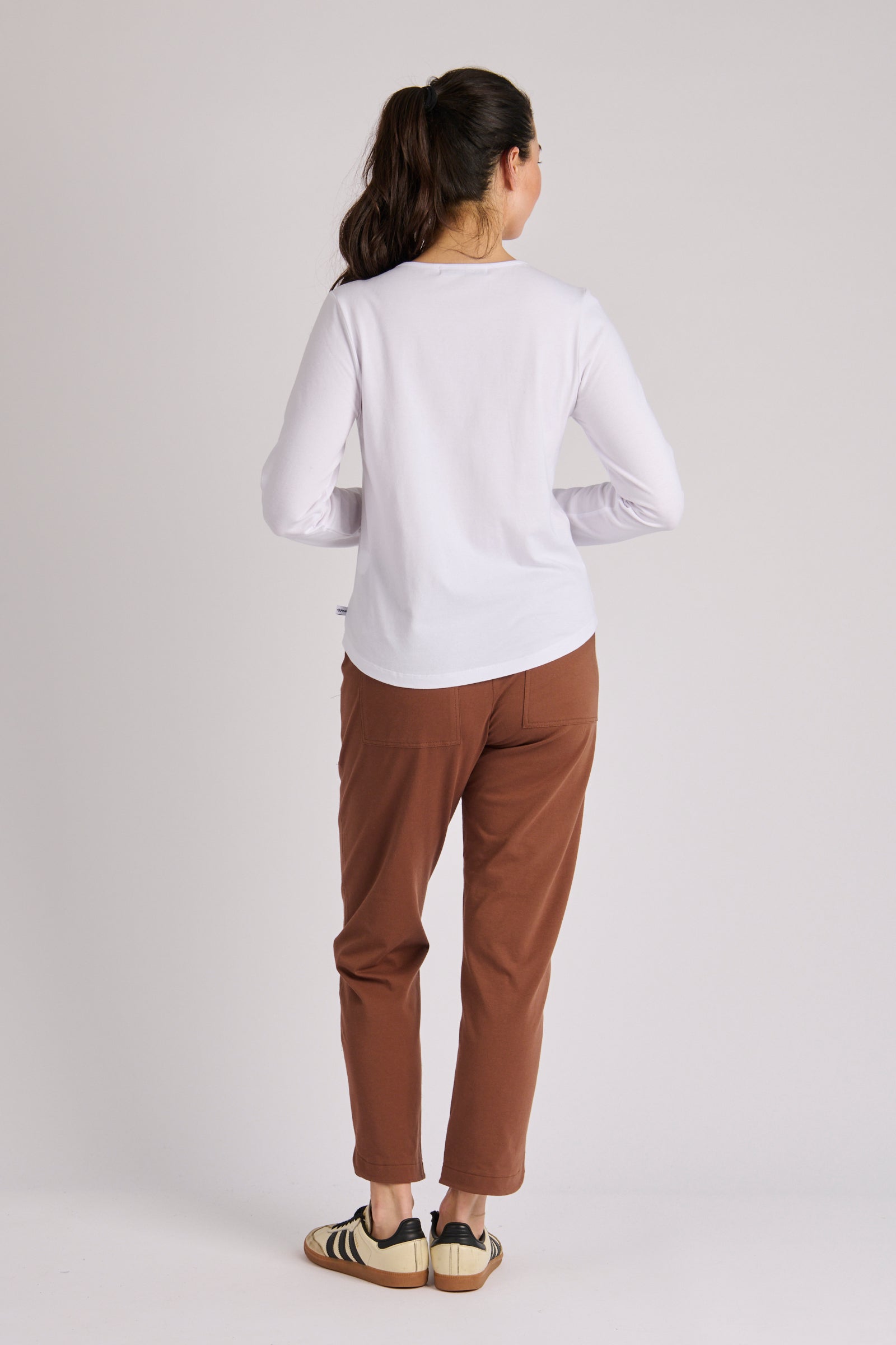 A modern everyday essential designed for comfort and ease. The Panel Back Top is crafted from a soft cotton elastane blend that offers breathable stretch and a beautiful drape. The relaxed silhouette is complemented by a clean boat-style neckline and a subtle back panel detail that creates an easy, flattering shape. Effortless to style, this piece pairs perfectly with relaxed pants, denim or travel essentials.