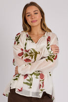 Gathered Neckline Blouse - White Floral