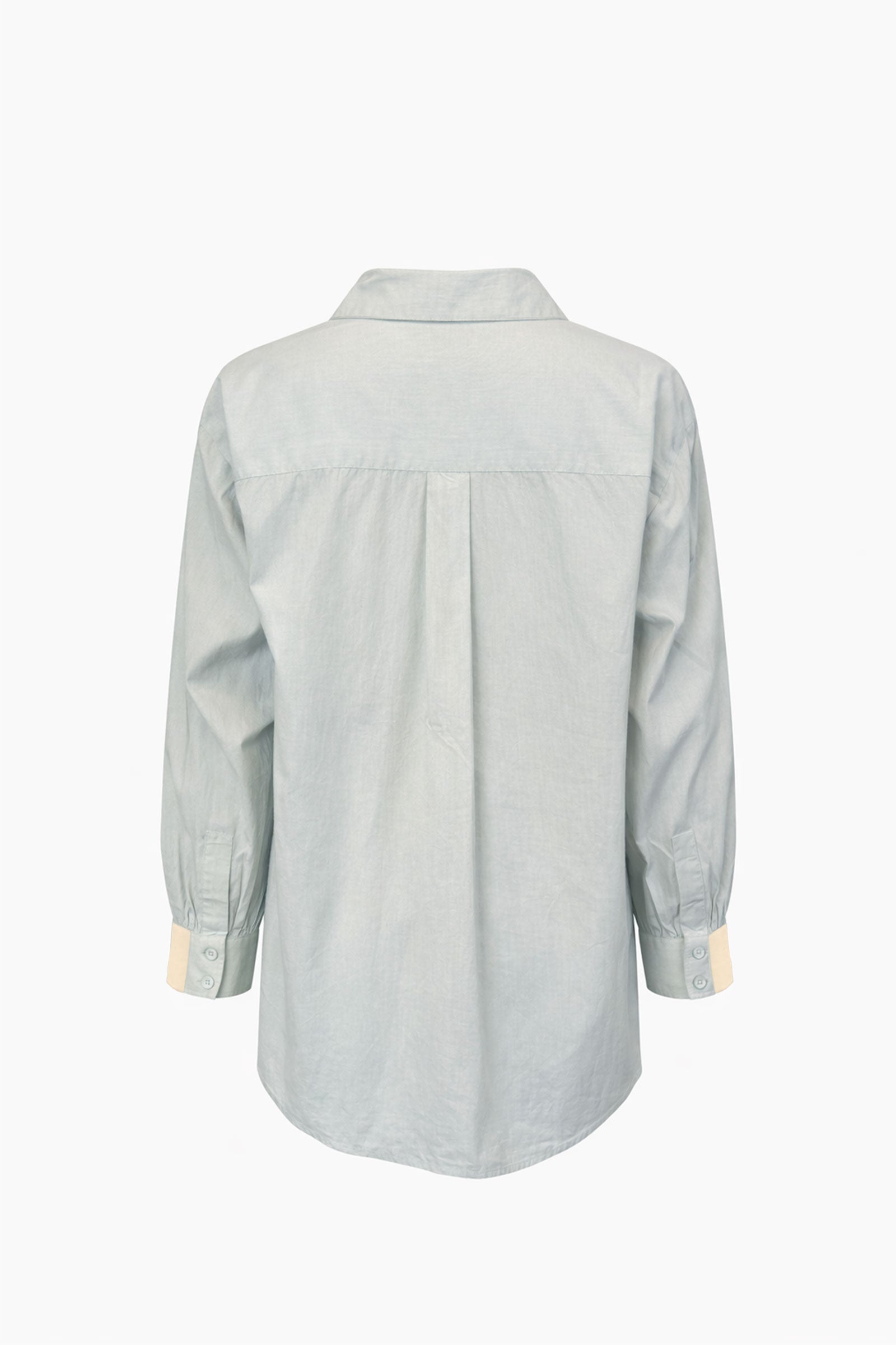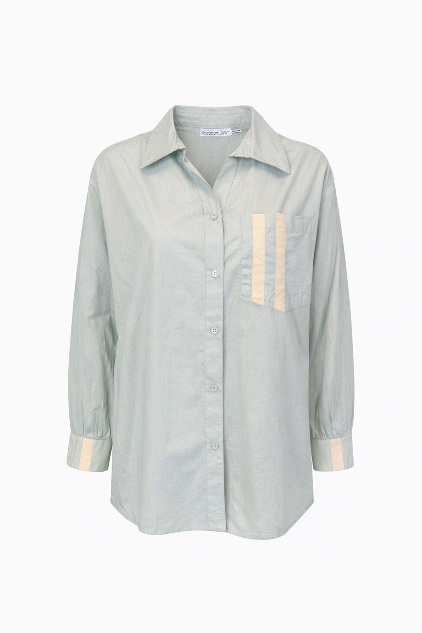 The Oversized Shirt in Icy Blue is crafted from 100% lightweight cotton, offering a breathable, soft feel with an effortlessly relaxed silhouette. Designed for easy everyday wear, this timeless button-through style is perfect worn loose, half-tucked, or layered over a tank for a laid-back yet polished look.