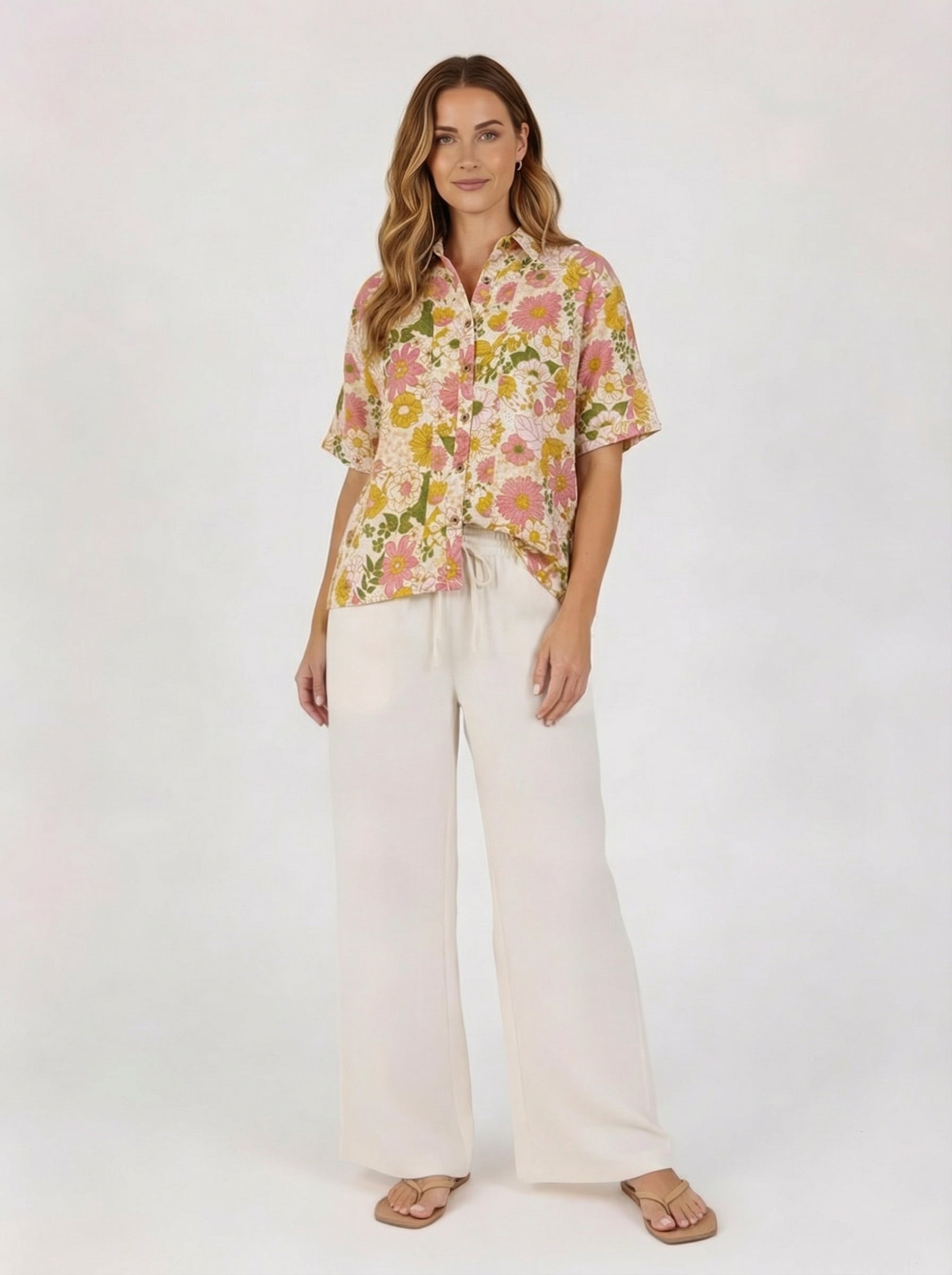 The Short Sleeve Button Through Shirt in Multi Floral is a fresh, easy-wear style designed for relaxed summer dressing. Featuring a soft collared neckline and an all-over floral print, this shirt brings colour and interest while remaining effortless and wearable. Crafted from breathable 100% cotton, it’s lightweight, comfortable, and perfect for warm days. Style it loose over neutral pants or half-tucked into denim for an easy everyday look.