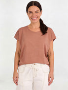 A customer favourite returns in fresh new colourways — meet the Shell Tee in Chestnut. Designed for effortless everyday wear, this much-loved style is crafted from breathable 100% cotton slub jersey, offering a soft texture with a relaxed drape. The warm chestnut hue brings energy to your wardrobe while remaining easy to style with denim, neutrals, or crisp white for a modern, elevated look.