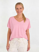 Effortless, breathable and endlessly wearable — the V Neck Curve Hem Tee is a customer favourite for a reason. Crafted from soft 100% cotton slub jersey, this relaxed silhouette drapes beautifully while offering everyday comfort. Now available in fresh new colourways, Soft Pink brings a light, uplifting tone that pairs perfectly with denim, neutrals, or layered looks.
