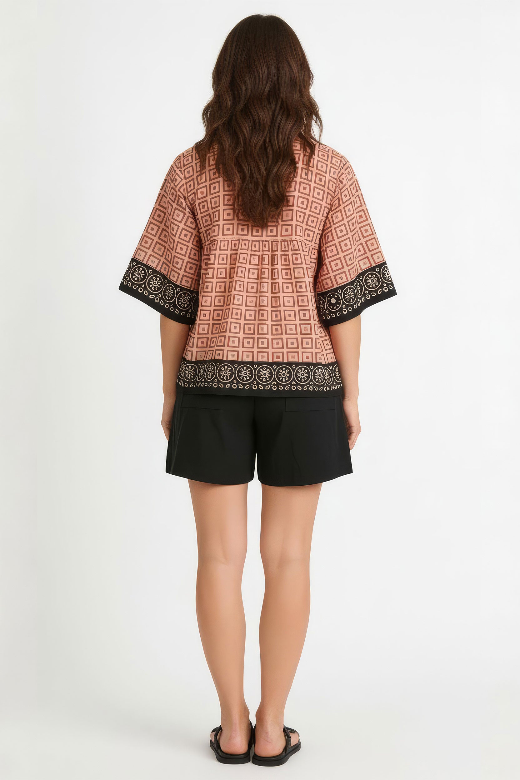 Light, breathable and effortlessly easy to wear, the Yoke Detail Blouse is crafted from soft 100% cotton voile for an airy, natural feel. Featuring a gathered yoke that creates beautiful movement through the body, this relaxed silhouette is finished with a button-through front and short sleeves. The red square print adds a bold graphic touch, making it a standout piece for everyday styling.