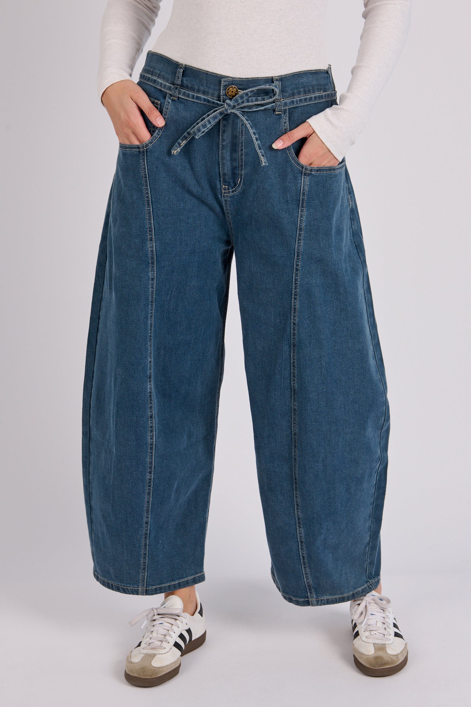 Barrel Leg Jeans - Mid Blue Wash