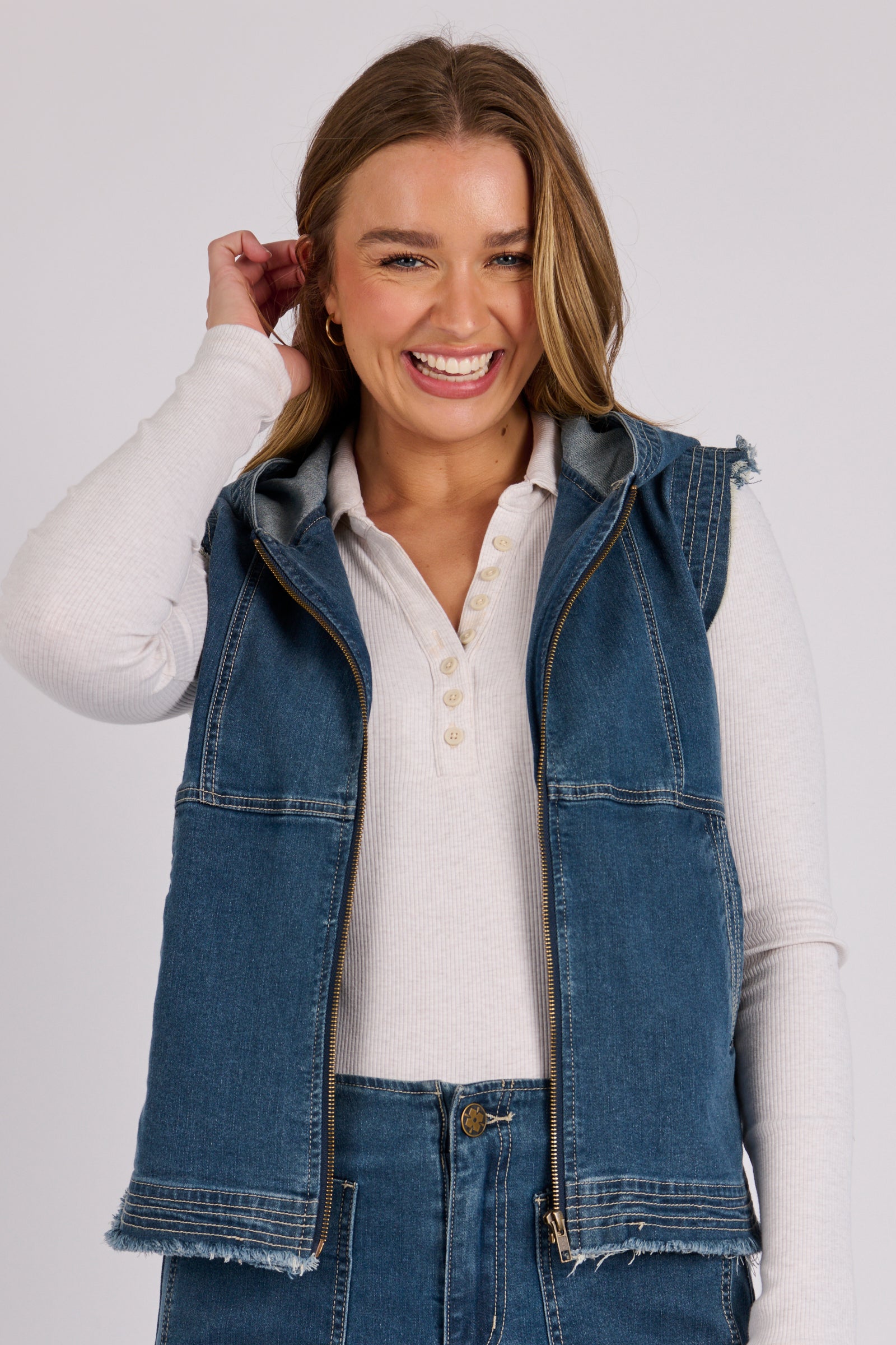 Zip Through Vest - Mid Blue Wash
