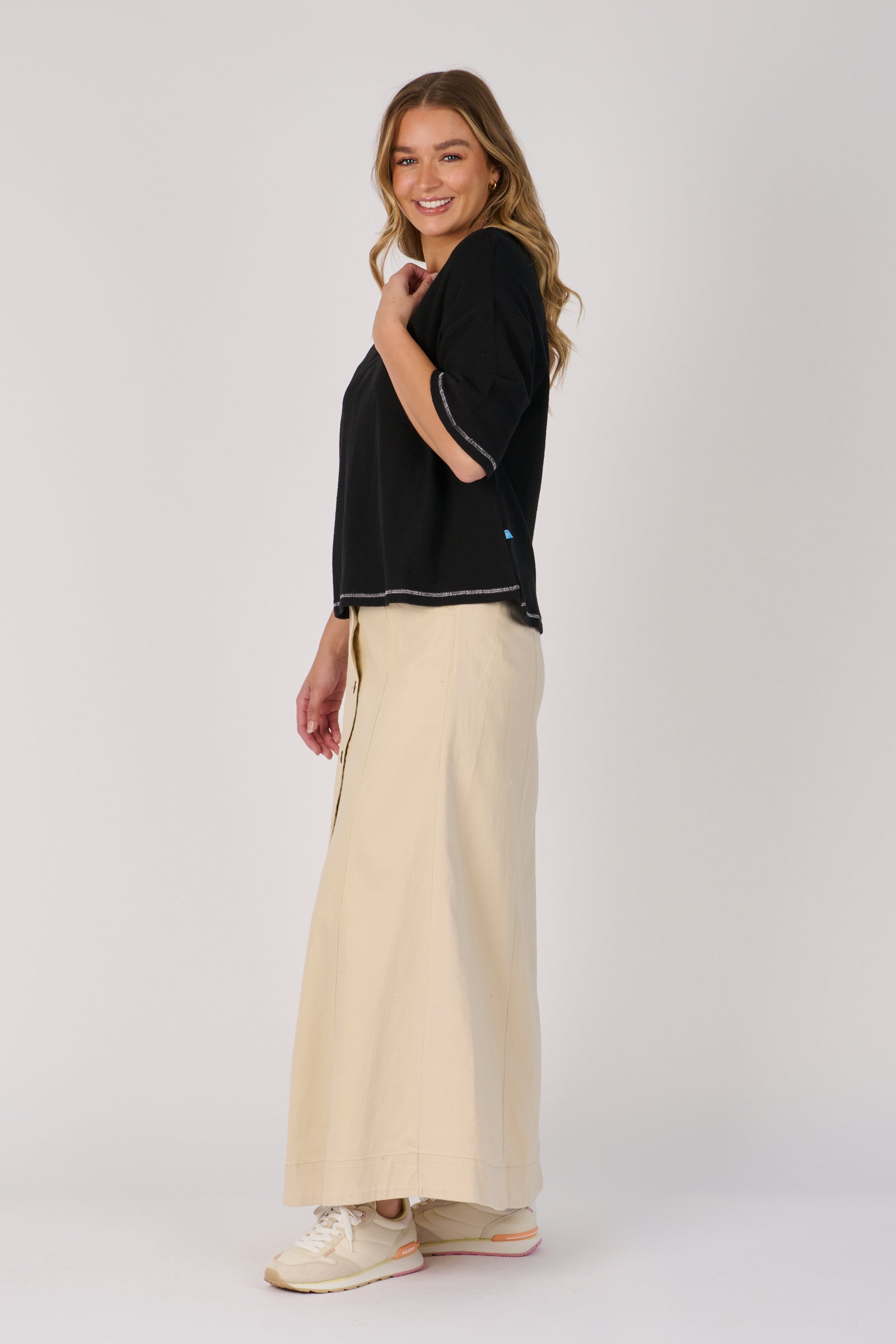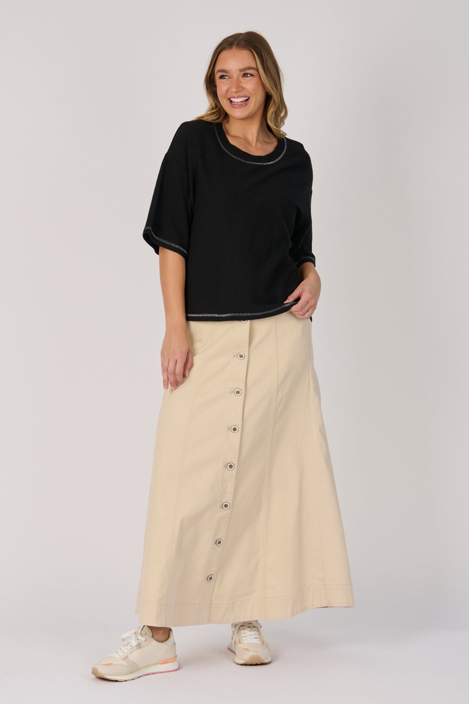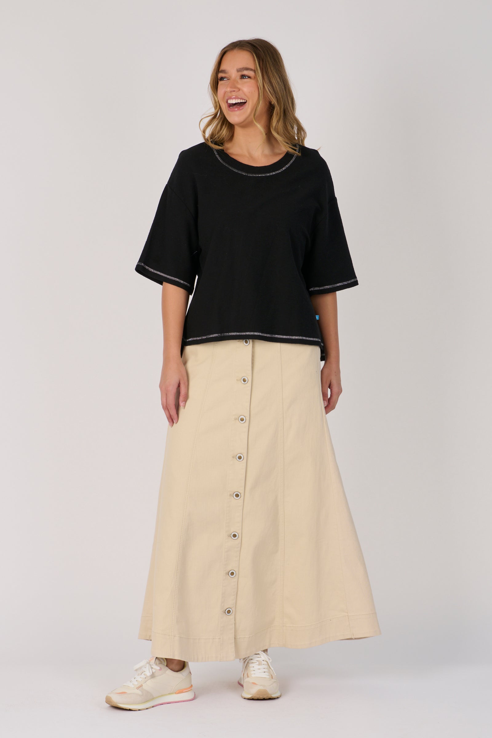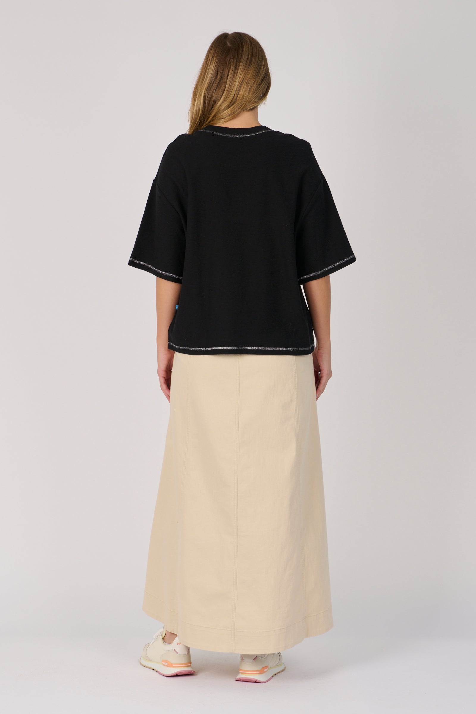 Contrast Stitch Boxy Tee - Black