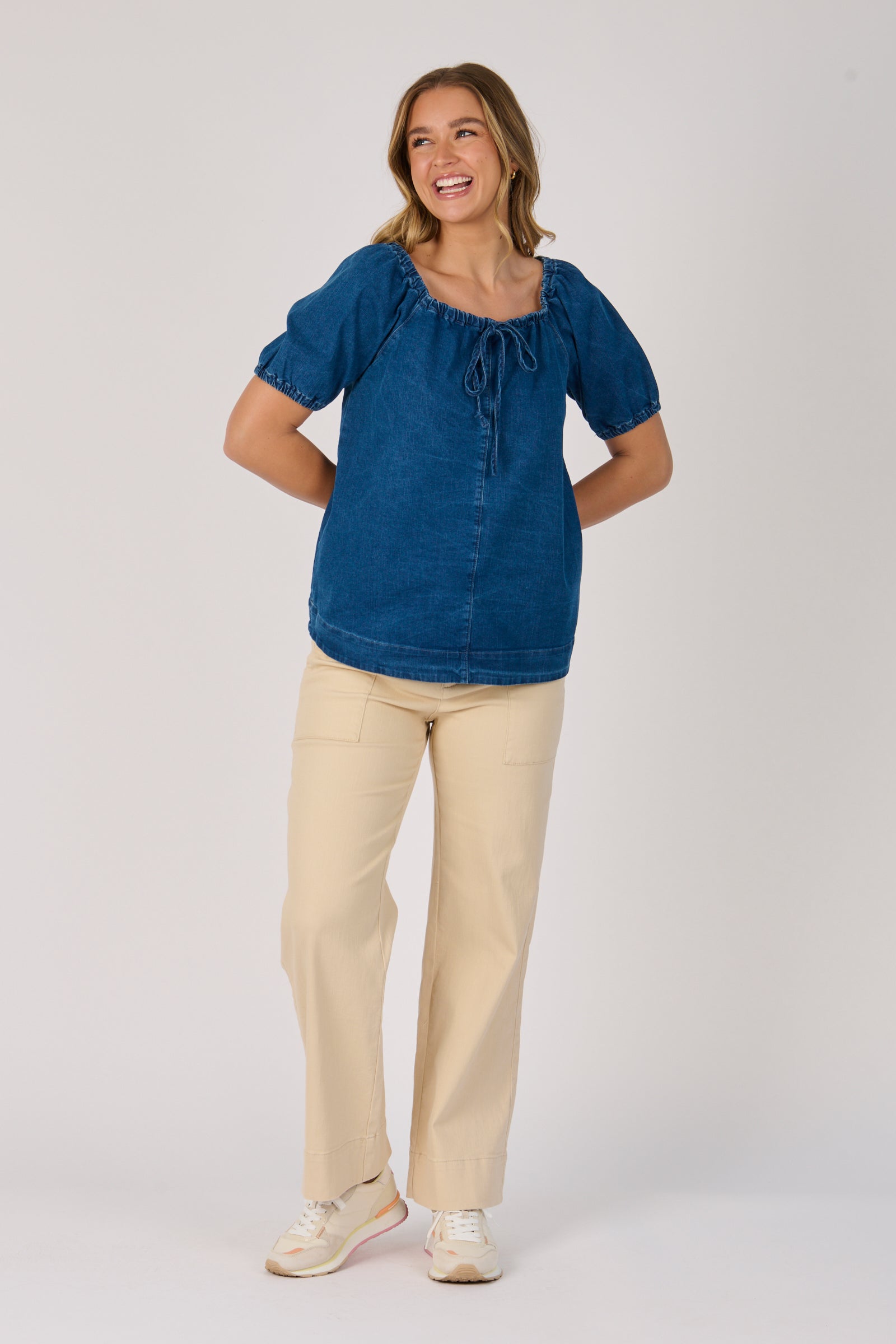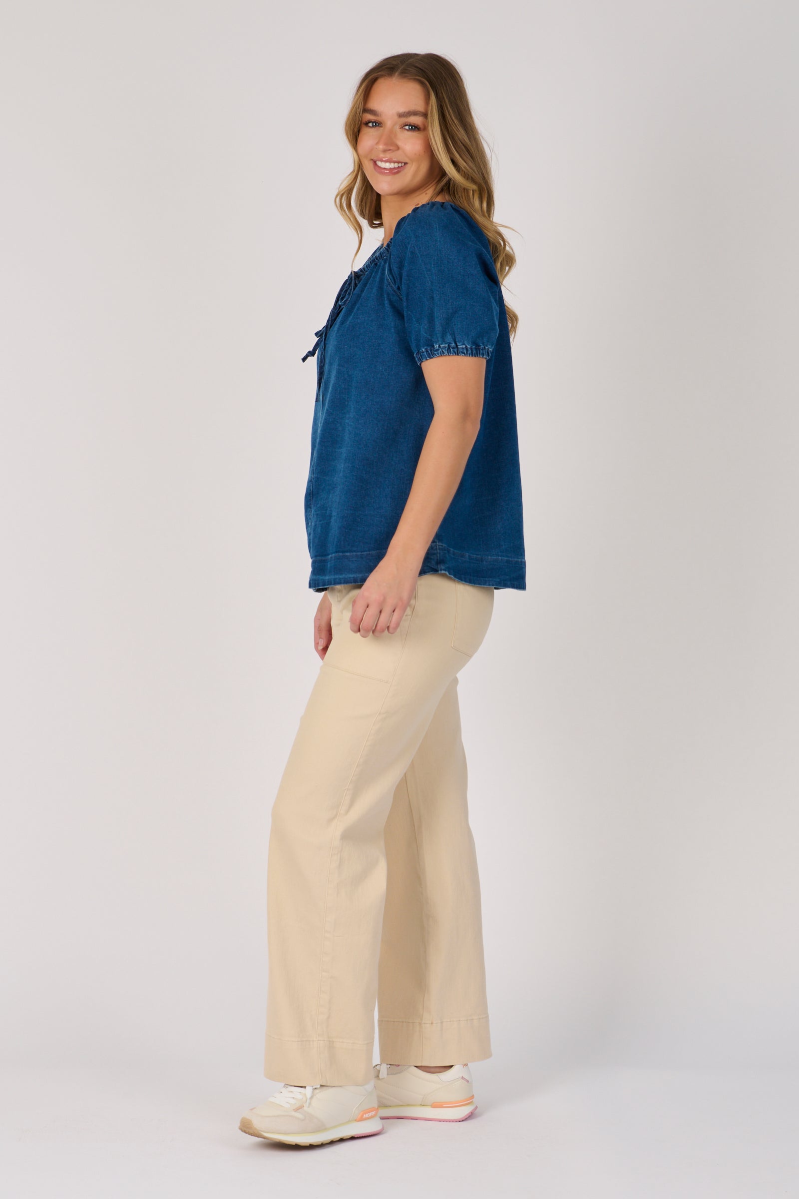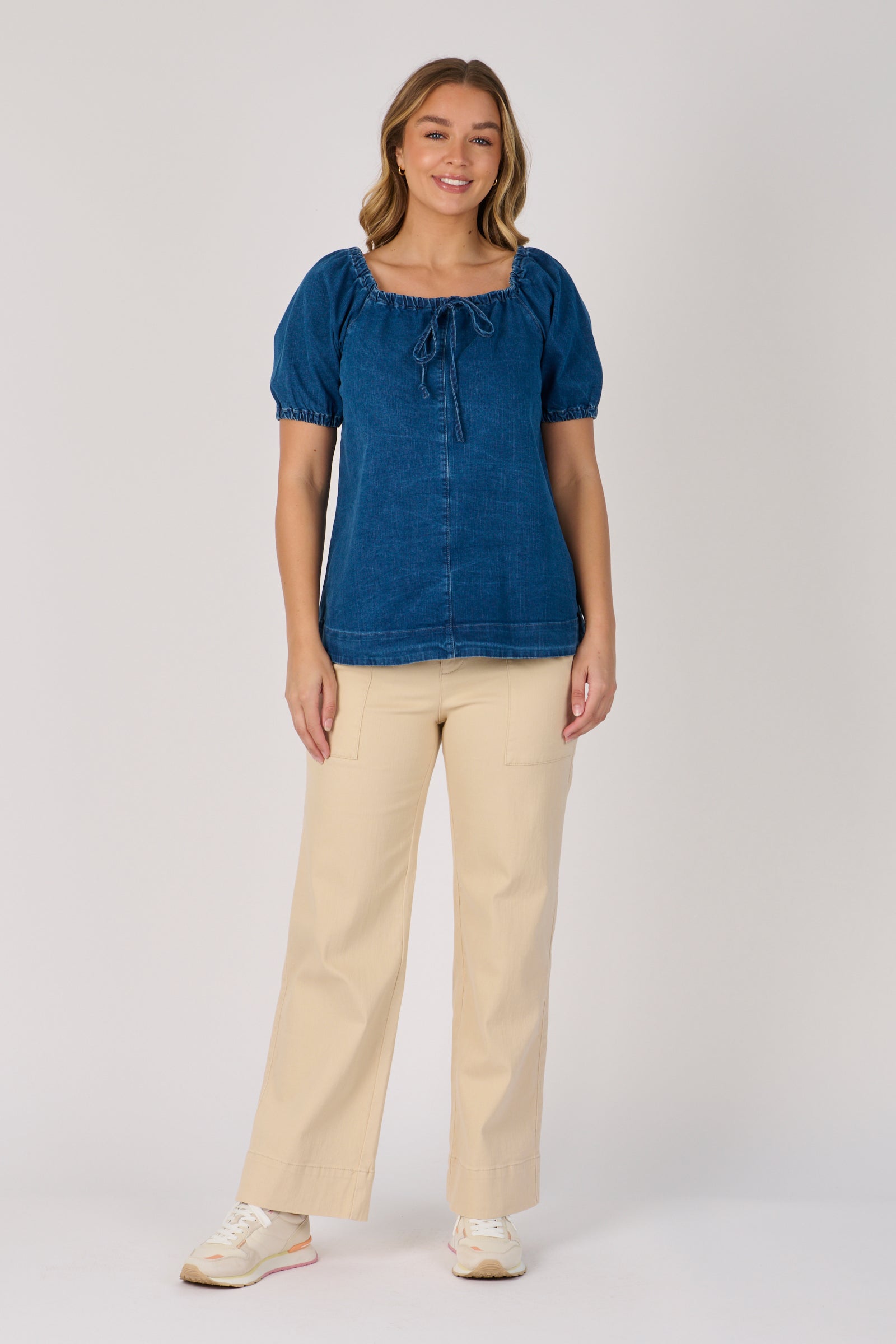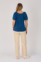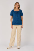 Gathered Neckline Top - Mid Blue