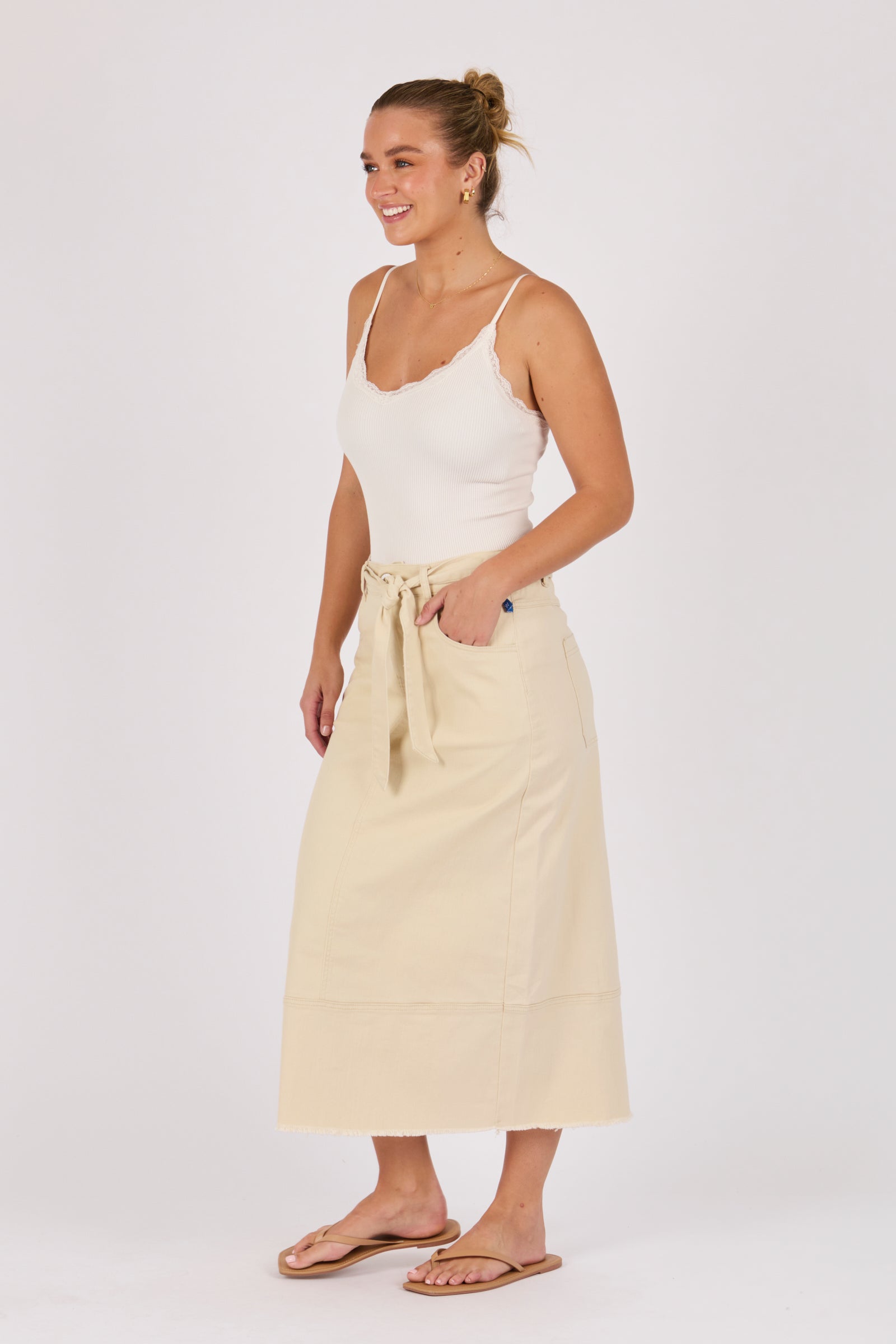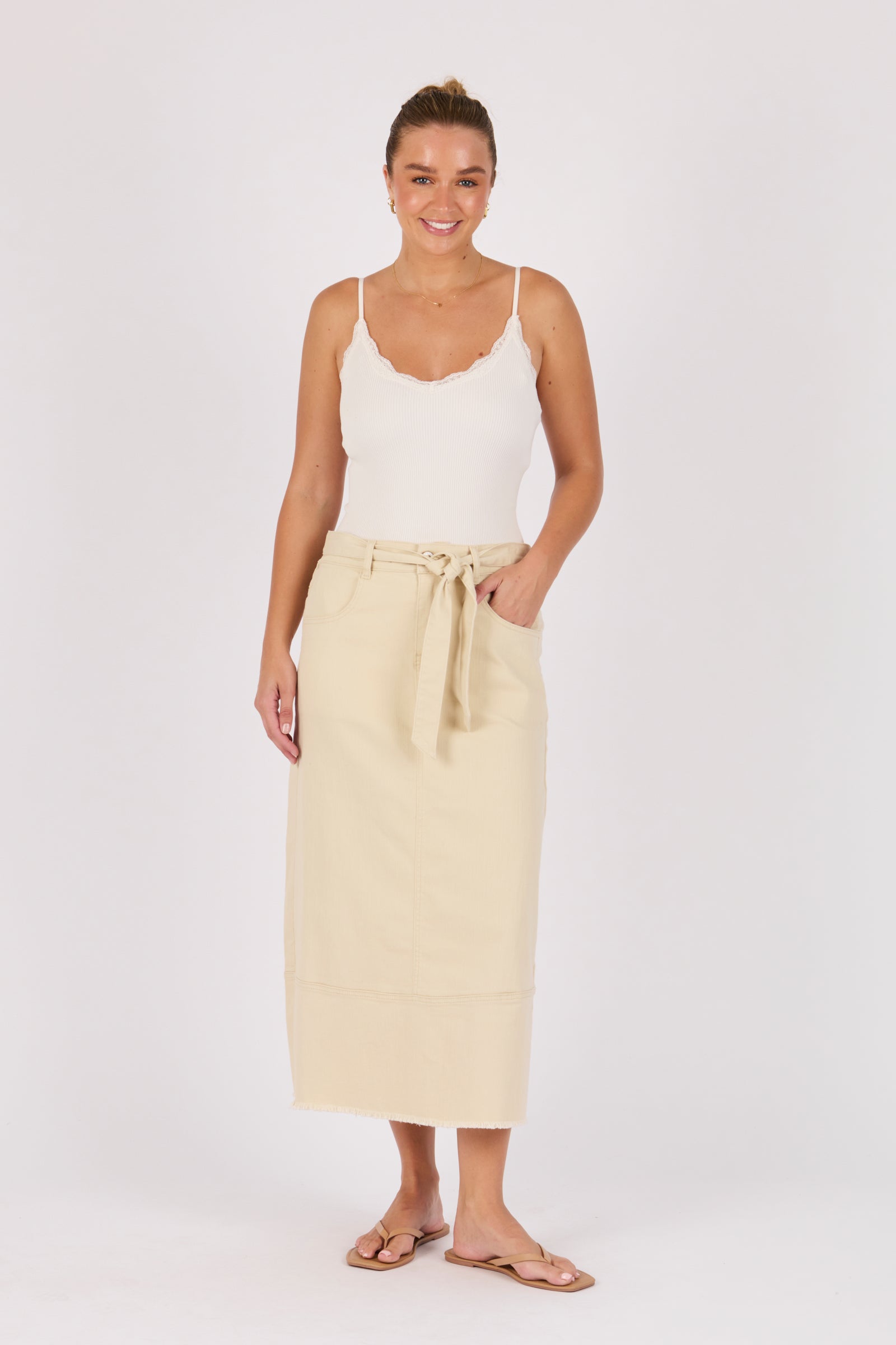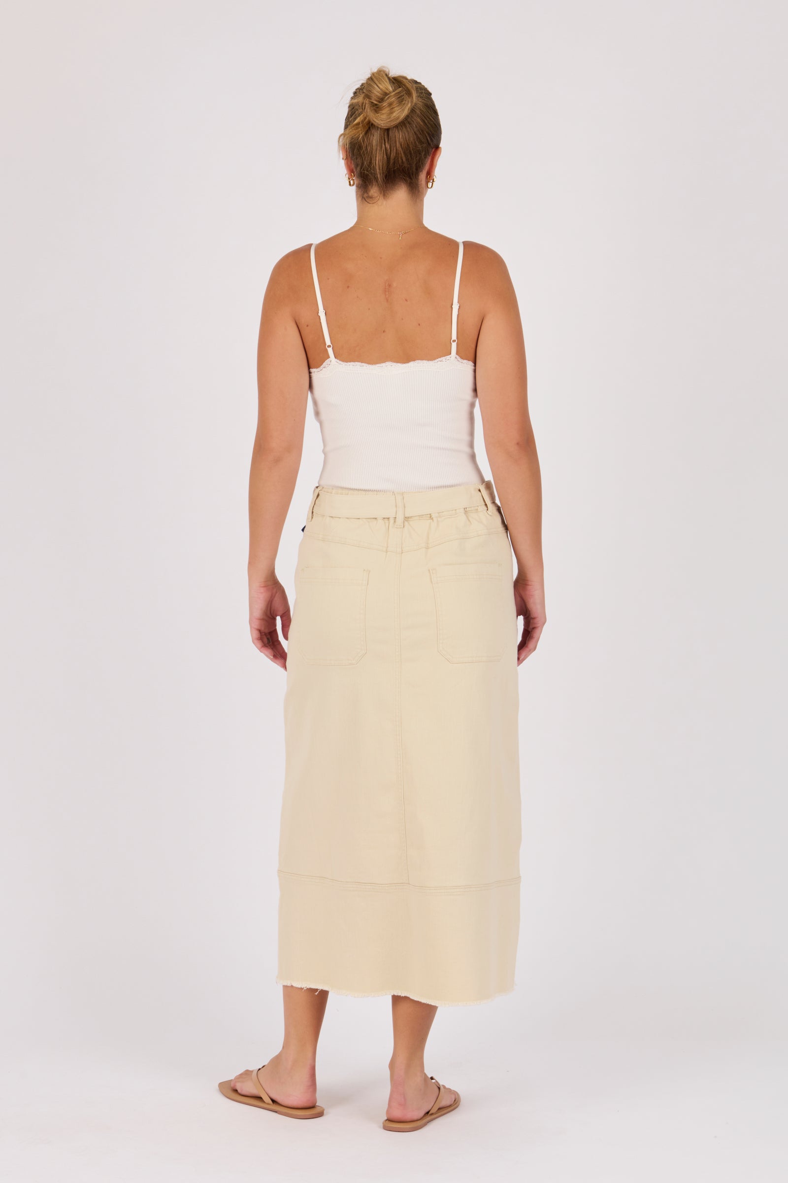 Hem Panel Detail Midi Skirt - Ecru