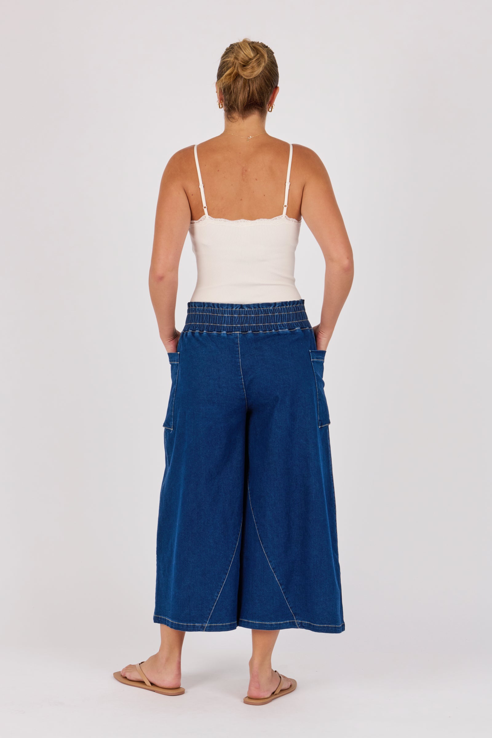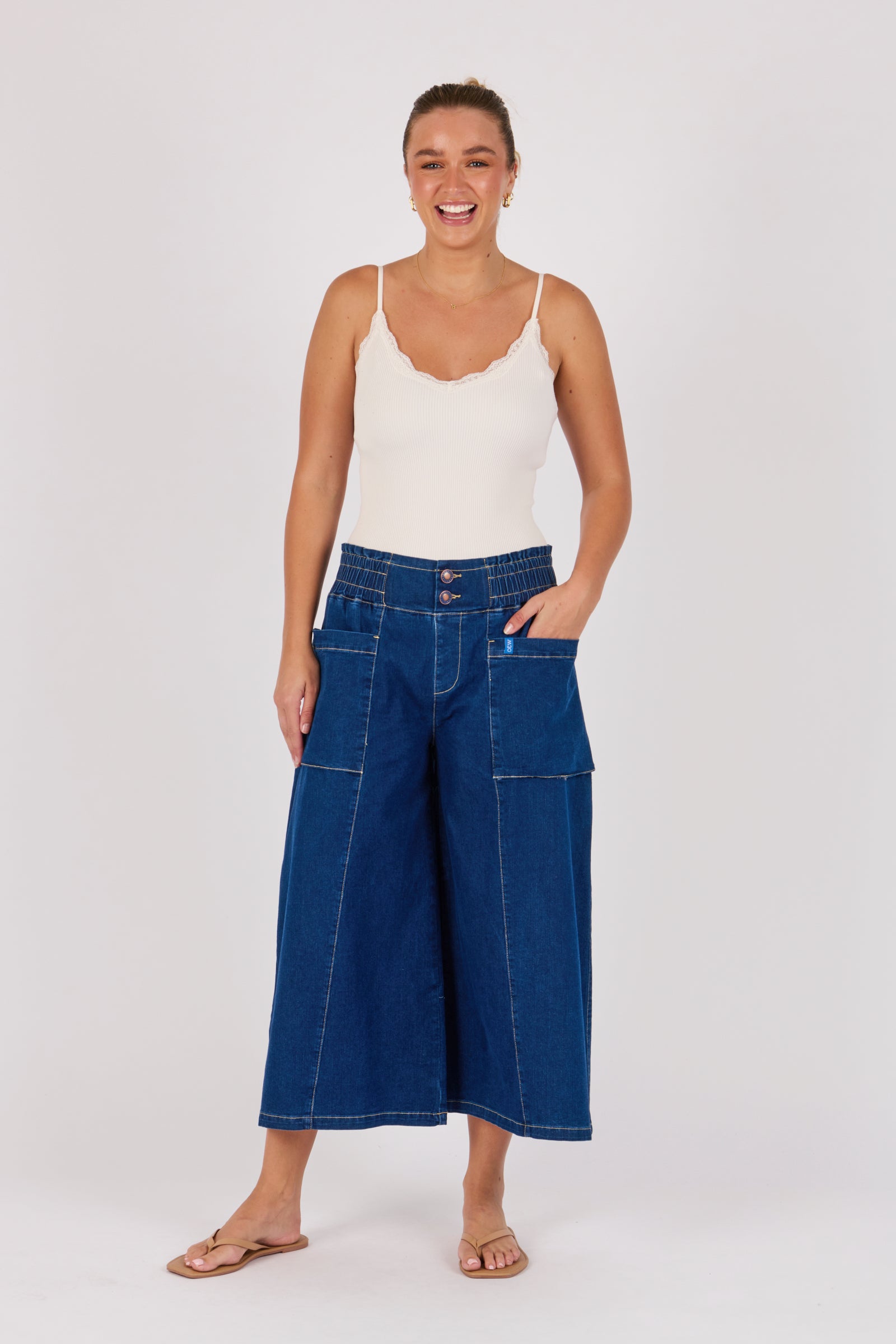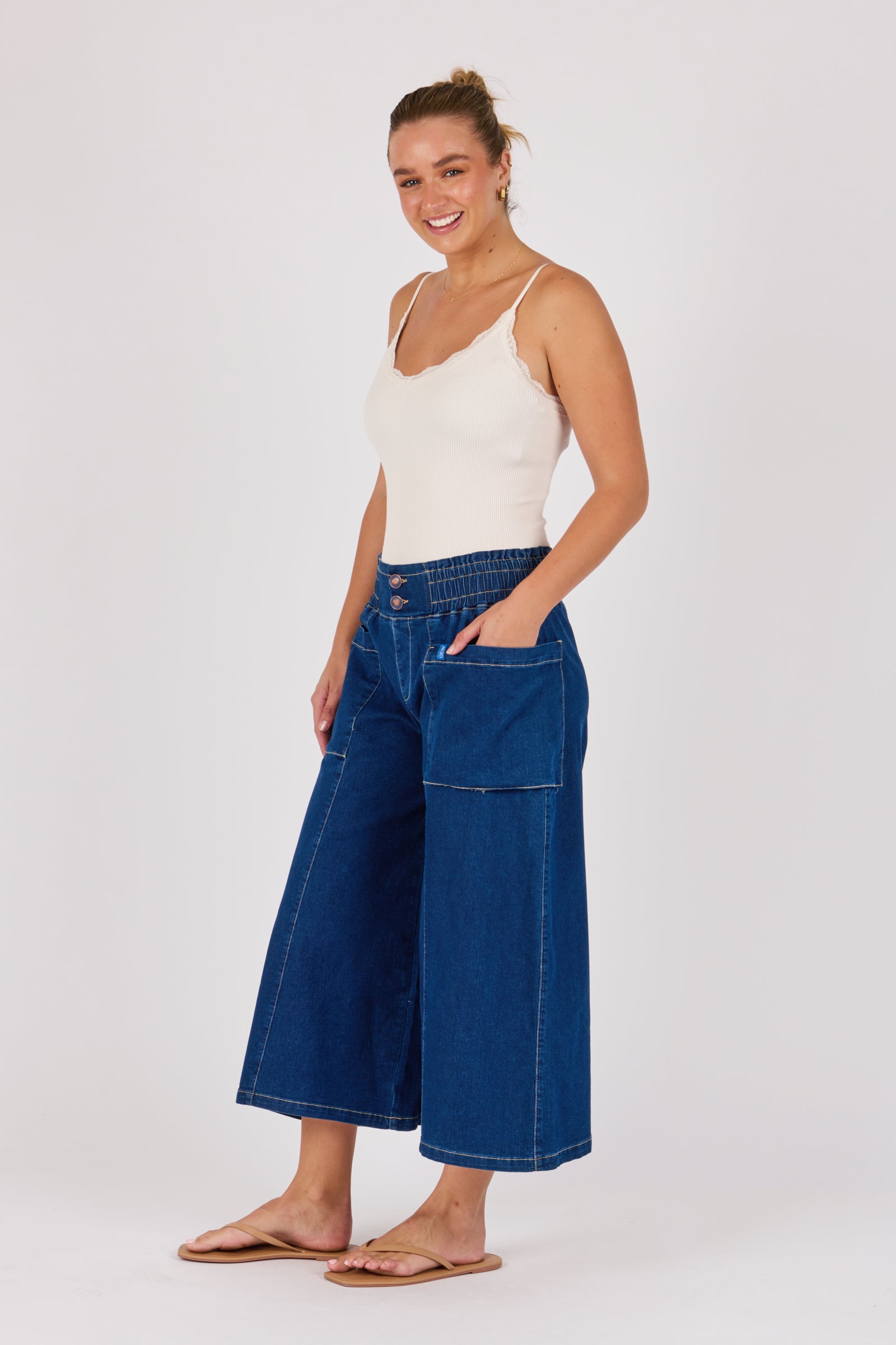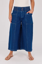 Patch Pocket Wide Leg Jean - Dark Blue