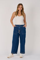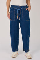 Tie Waist Baggy Jeans - Dark Blue