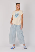 Half Collar Tee - Ecru Falling Hearts