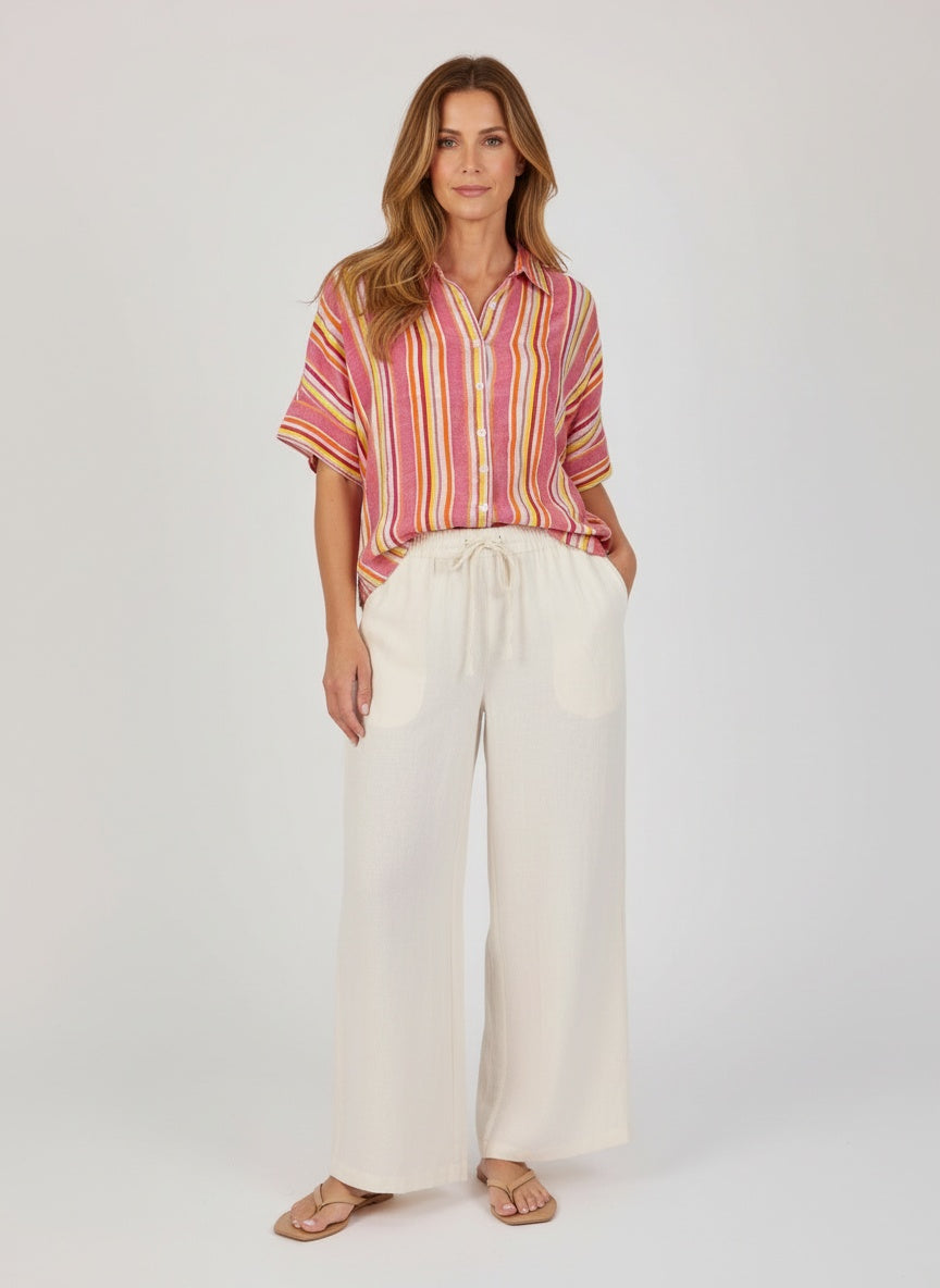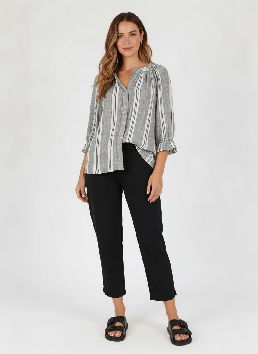 Raglan Sleeve Peasant Top - Black White Textured Stripe