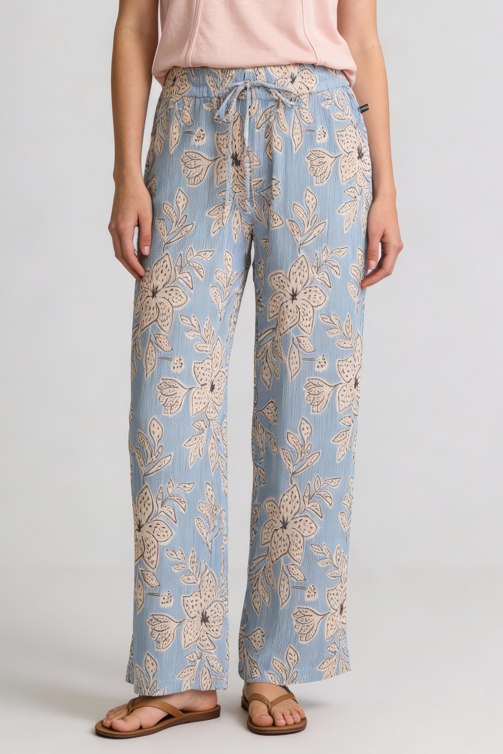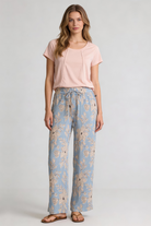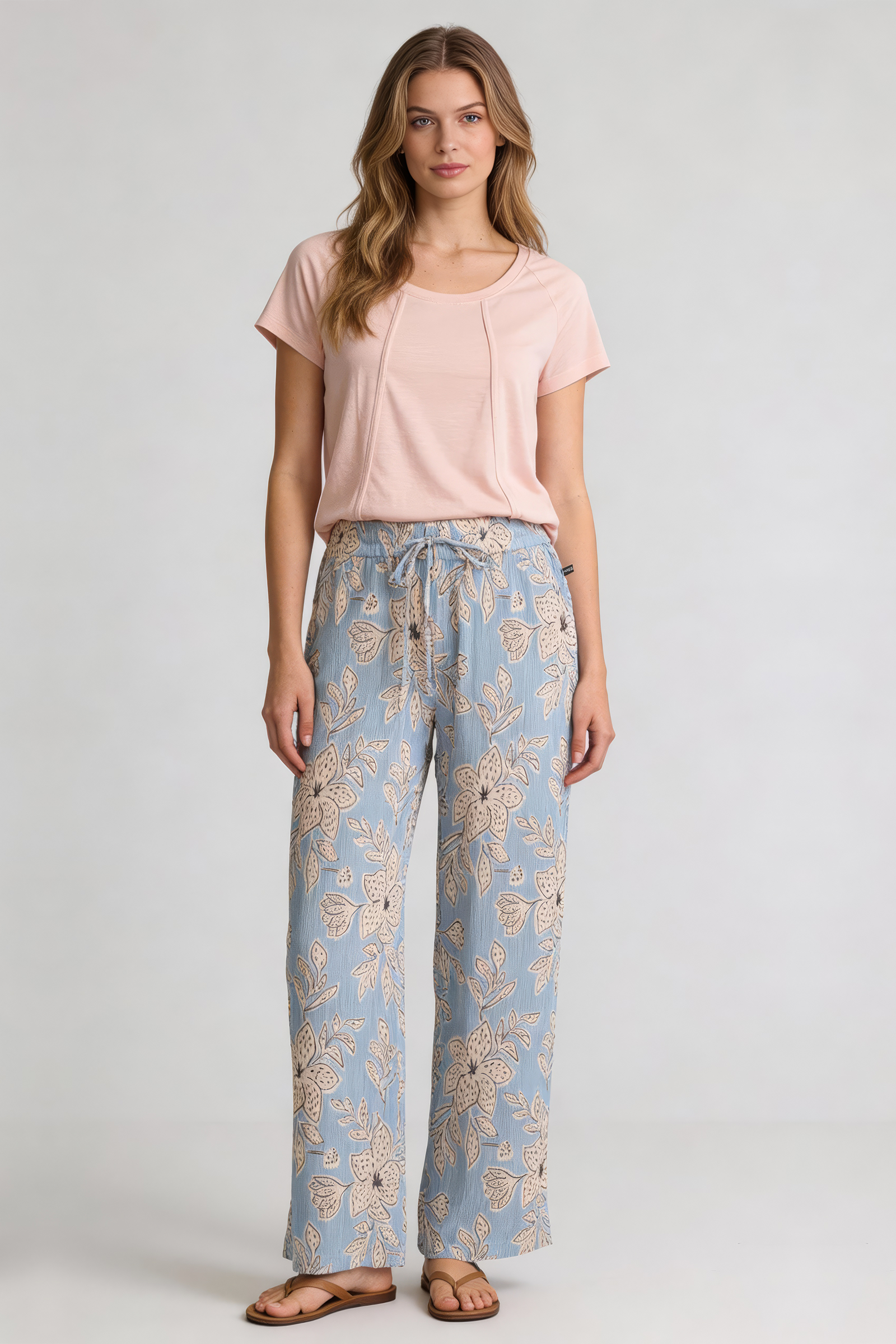 The Tie Waist Pant in Blue Floral is an effortless warm-weather essential, designed for relaxed comfort with an easy, flowing silhouette. Featuring a soft elastic waist with adjustable tie, these pants offer a flattering fit with all-day wearability. Crafted from lightweight 100% crinkle cotton, they’re breathable and airy — perfect for summer days. Style them with a simple tee or tank for an easy everyday look, or pair back with a linen shirt for relaxed polish.