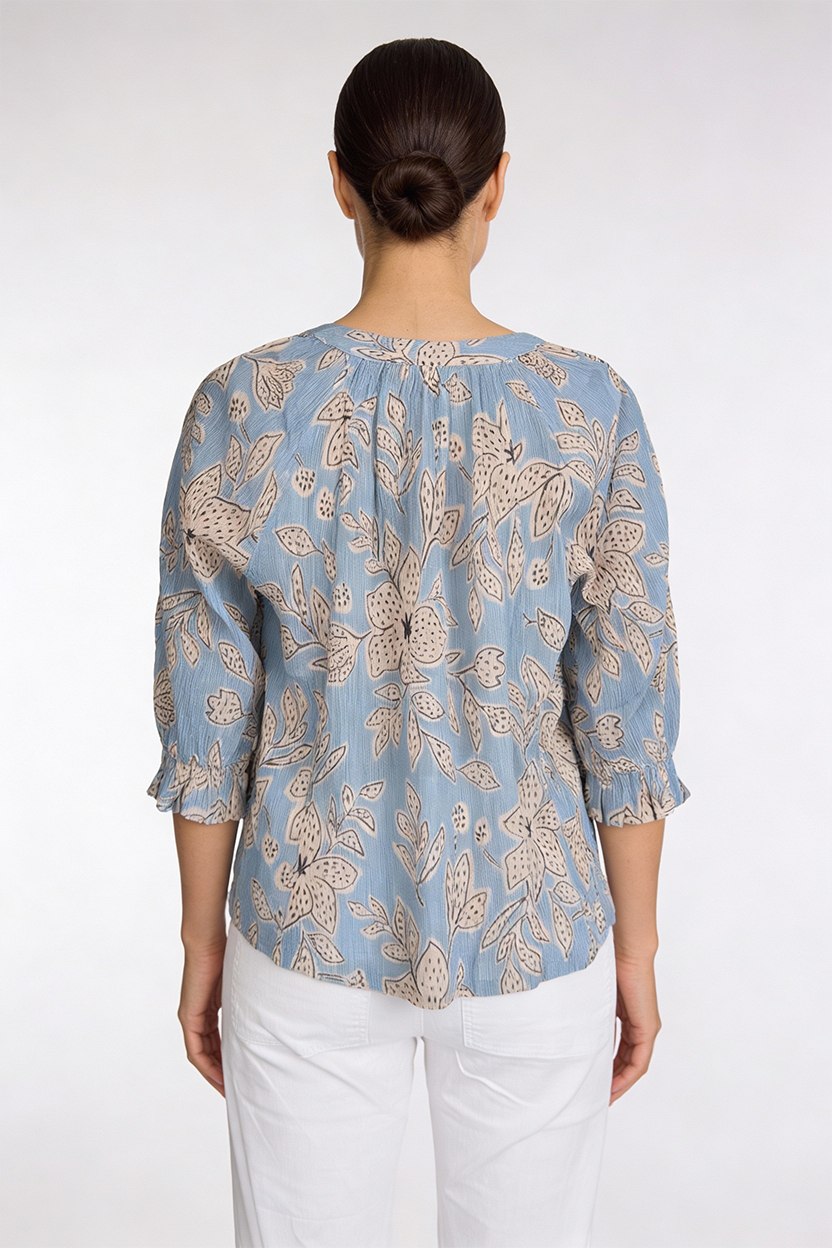 The Raglan Sleeve Peasant Top in Blue Floral is a relaxed, easy-wear style designed for effortless everyday dressing. Featuring a soft peasant silhouette with raglan sleeves, this top offers a flattering drape with comfortable movement. Crafted from lightweight 100% crinkle cotton, it’s breathable and airy — perfect for warm days. The soft blue floral print adds a gentle statement while remaining easy to style with denim, linen pants or relaxed skirts.