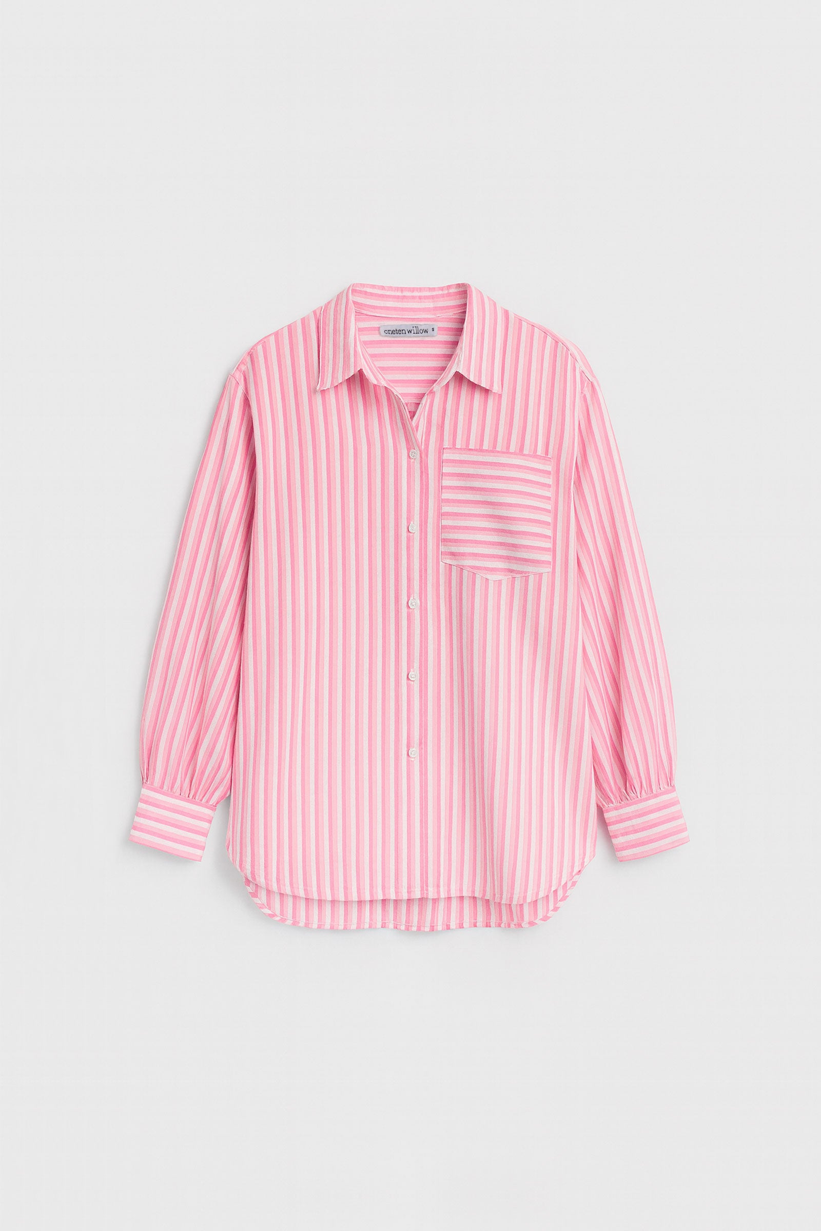 A timeless staple, this bold pink stripe shirt features a classic button-through front, collared neckline, and relaxed fit. Crafted from a breathable cotton, it’s perfect for layering or wearing on its own.