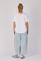 The Drop Back Tee in Blue Lemons is crafted from a soft cotton blend for everyday comfort. Featuring a relaxed fit with a round neckline, dropped shoulder, and a curved drop back hem, this tee is perfect for casual styling with a touch of personality.