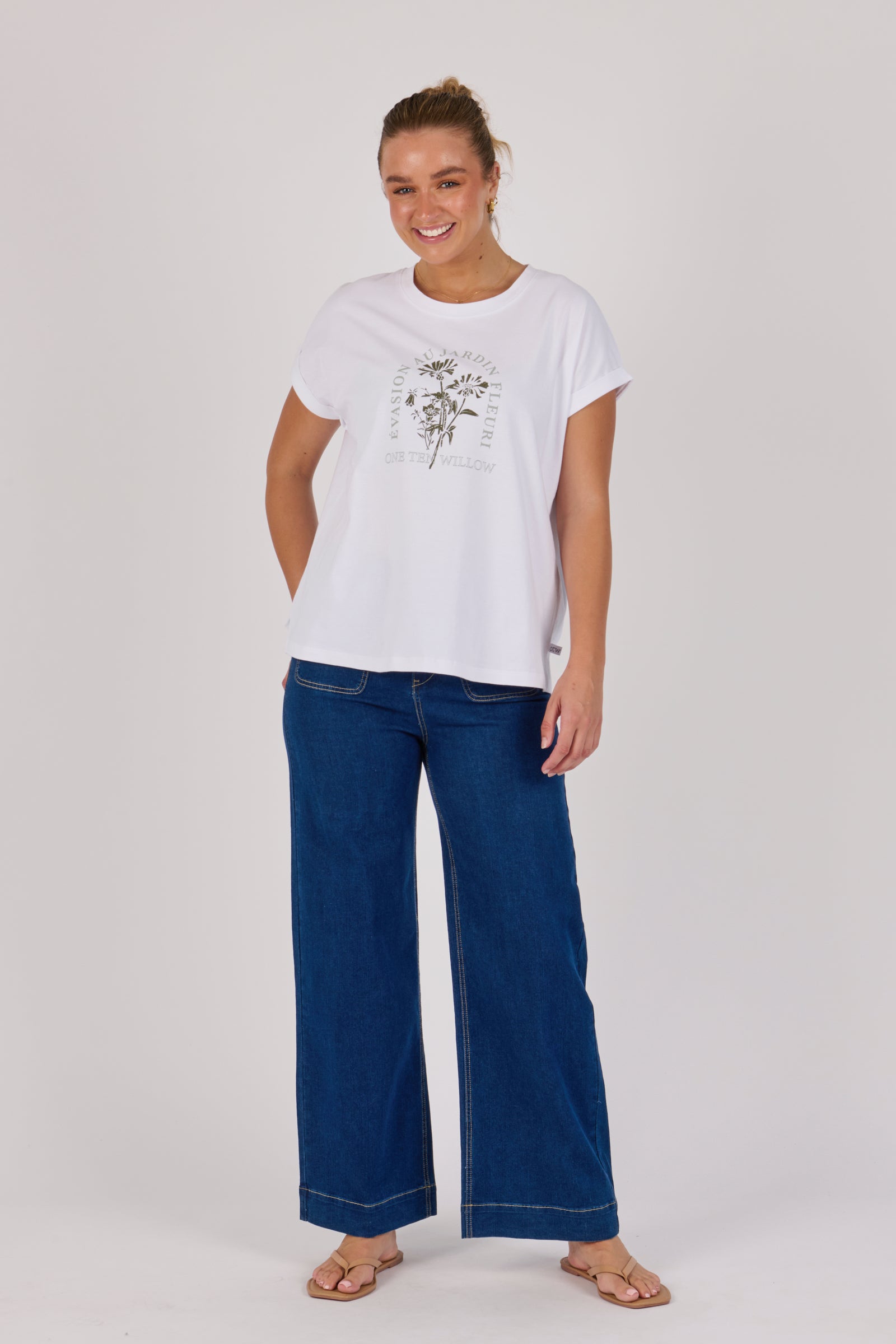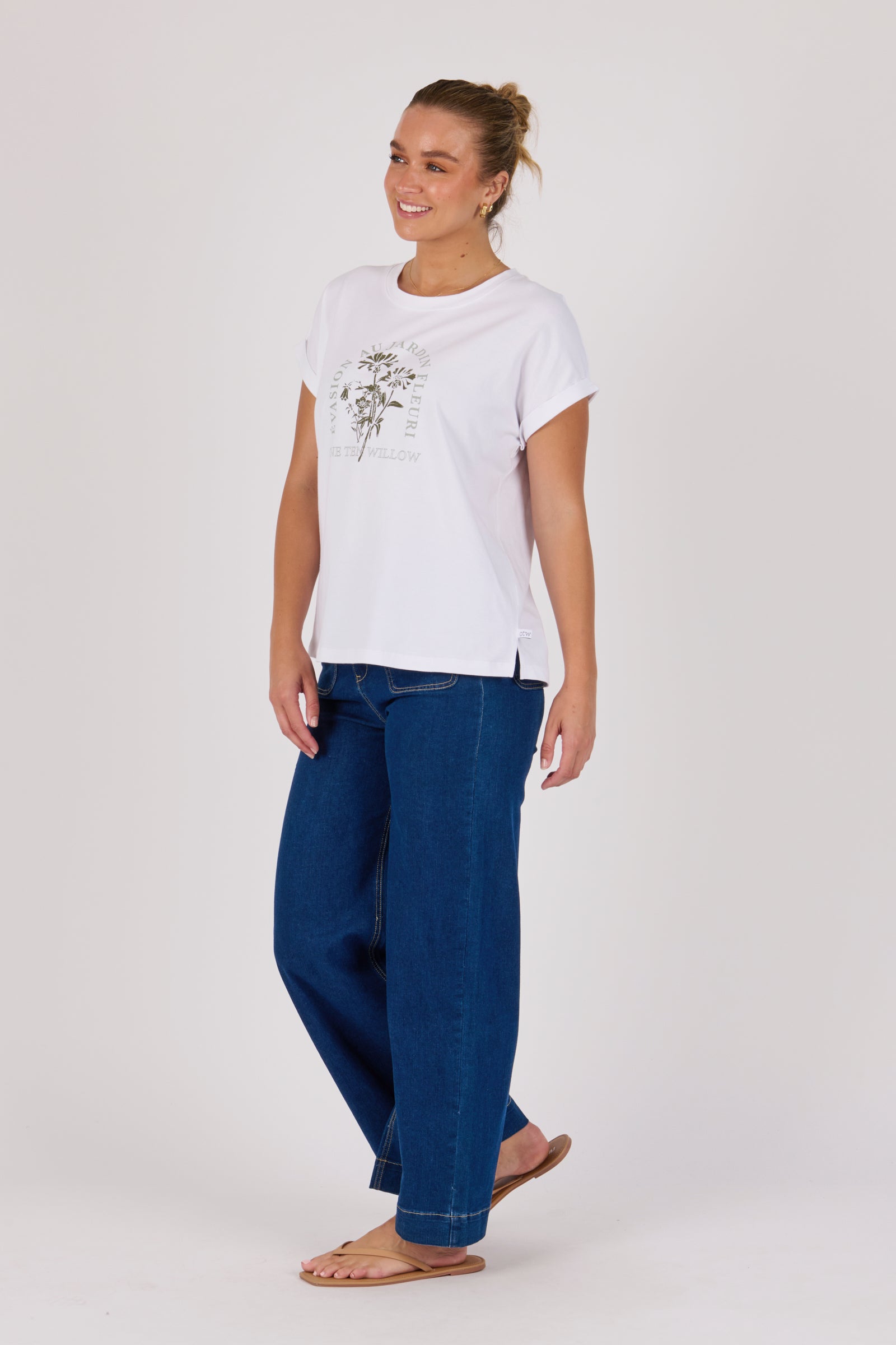 Roll Cuff Tee - White Floral