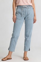 The Beach Pant in Mid Blue is a relaxed everyday essential, designed for effortless comfort with a clean, modern finish. Featuring an easy pull-on waist with adjustable drawstring, these pants offer a flattering fit with relaxed structure. Crafted from a soft cotton blend with stretch, they provide comfort and ease while holding their shape. Perfect for warm days, they style effortlessly with tees, tanks or lightweight shirts for easy coastal-inspired dressing.
