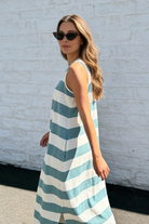 Sleeveless A Line Dress - Blue Stripe
