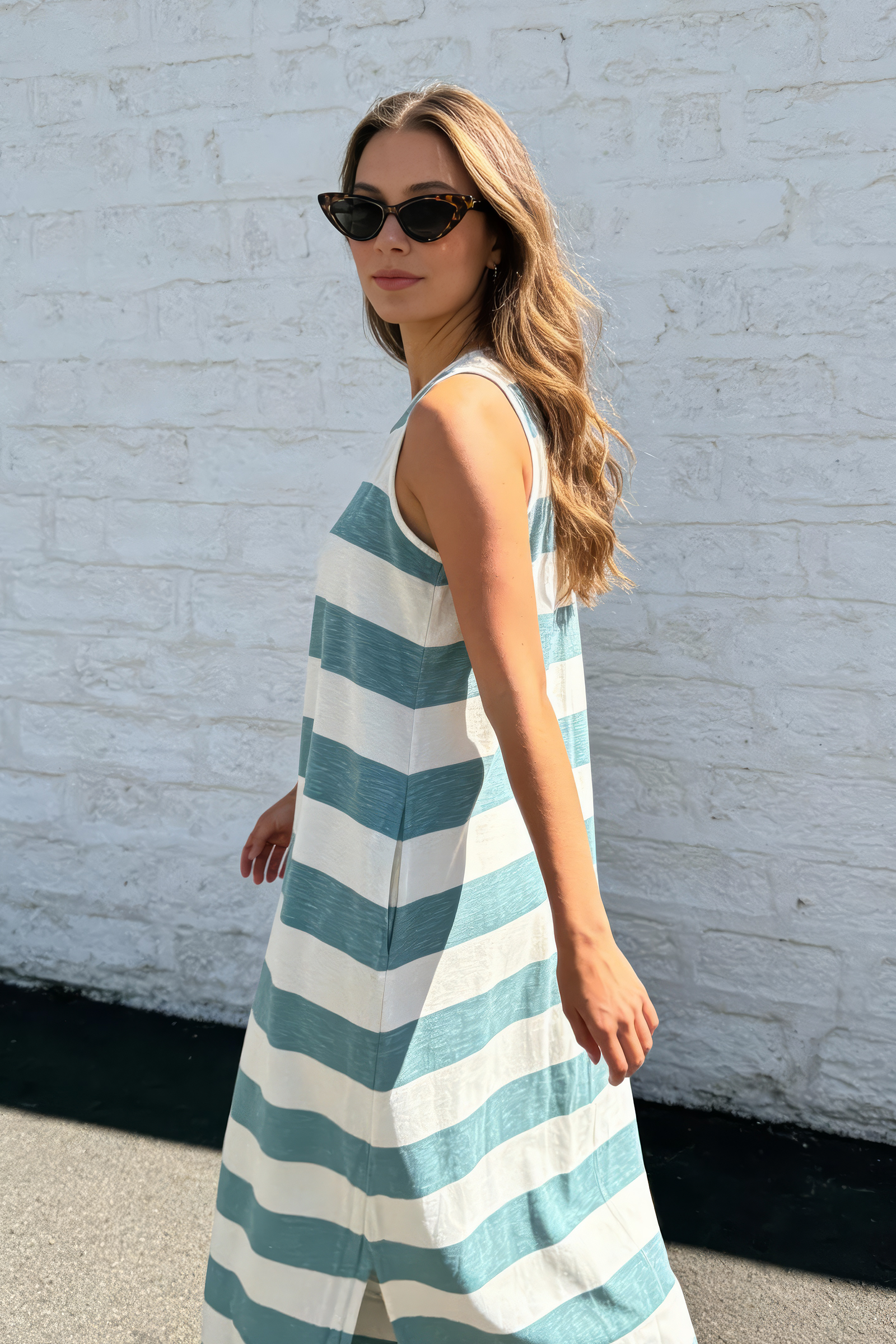 Design: Sleeveless A-line silhouette with a timeless blue stripe for easy everyday styling