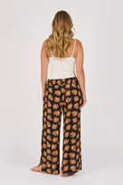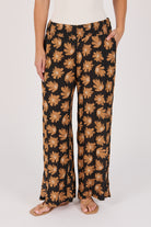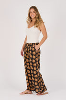 The Shirred Waist Pant in Chocolate Flower is crafted from breathable 100% Viscose for comfort and ease. Featuring a wide-leg silhouette and a shirred waistband, these pants are perfect for both relaxed days and elevated styling.