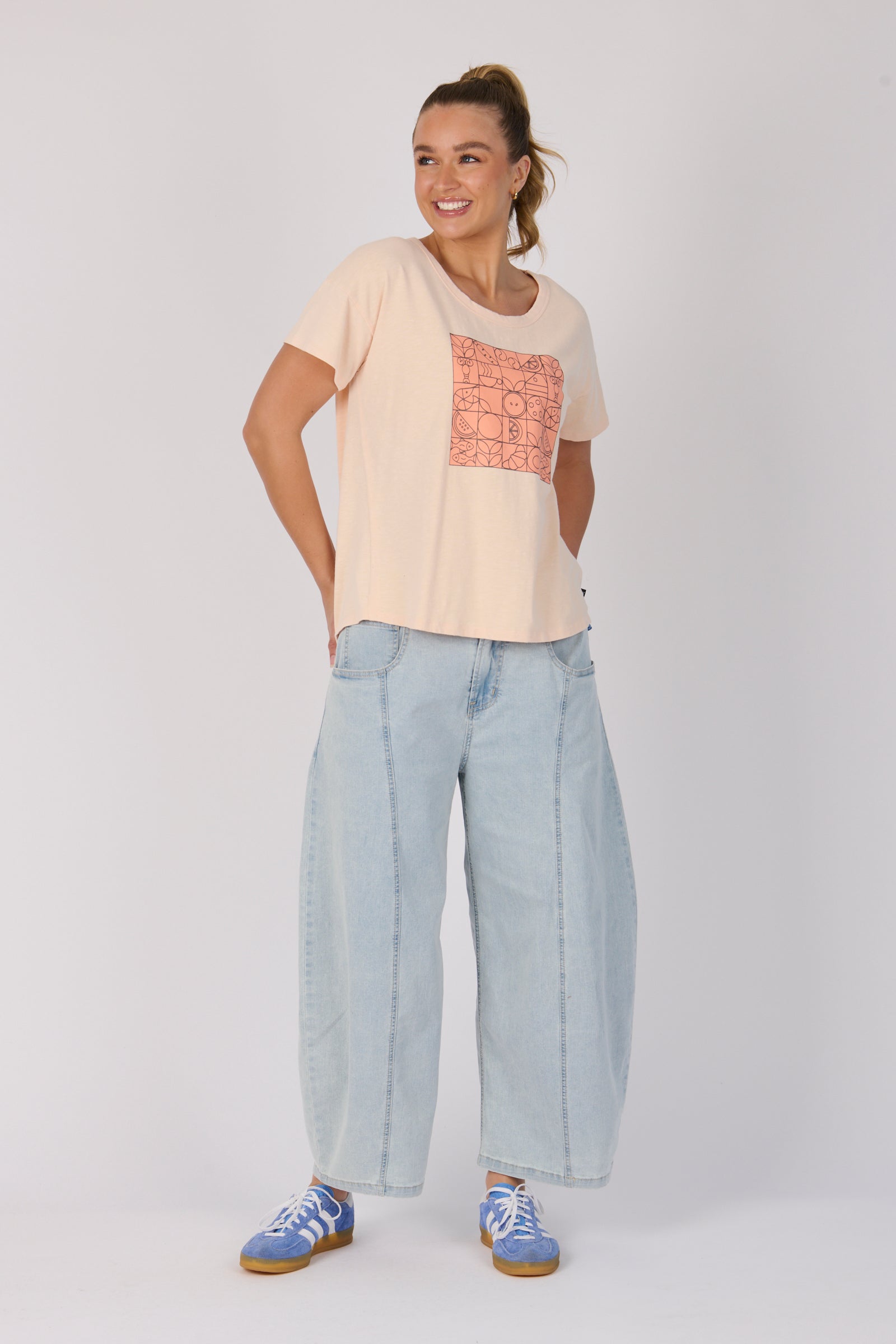 The Pleat Back Tee in Ecru is crafted from a soft cotton blend for everyday comfort. Featuring a relaxed fit with a round neckline, dropped shoulders, and a pleat back detail for added shape. A versatile wardrobe staple you’ll wear on repeat.