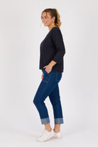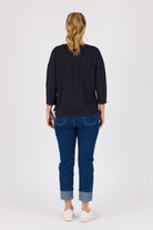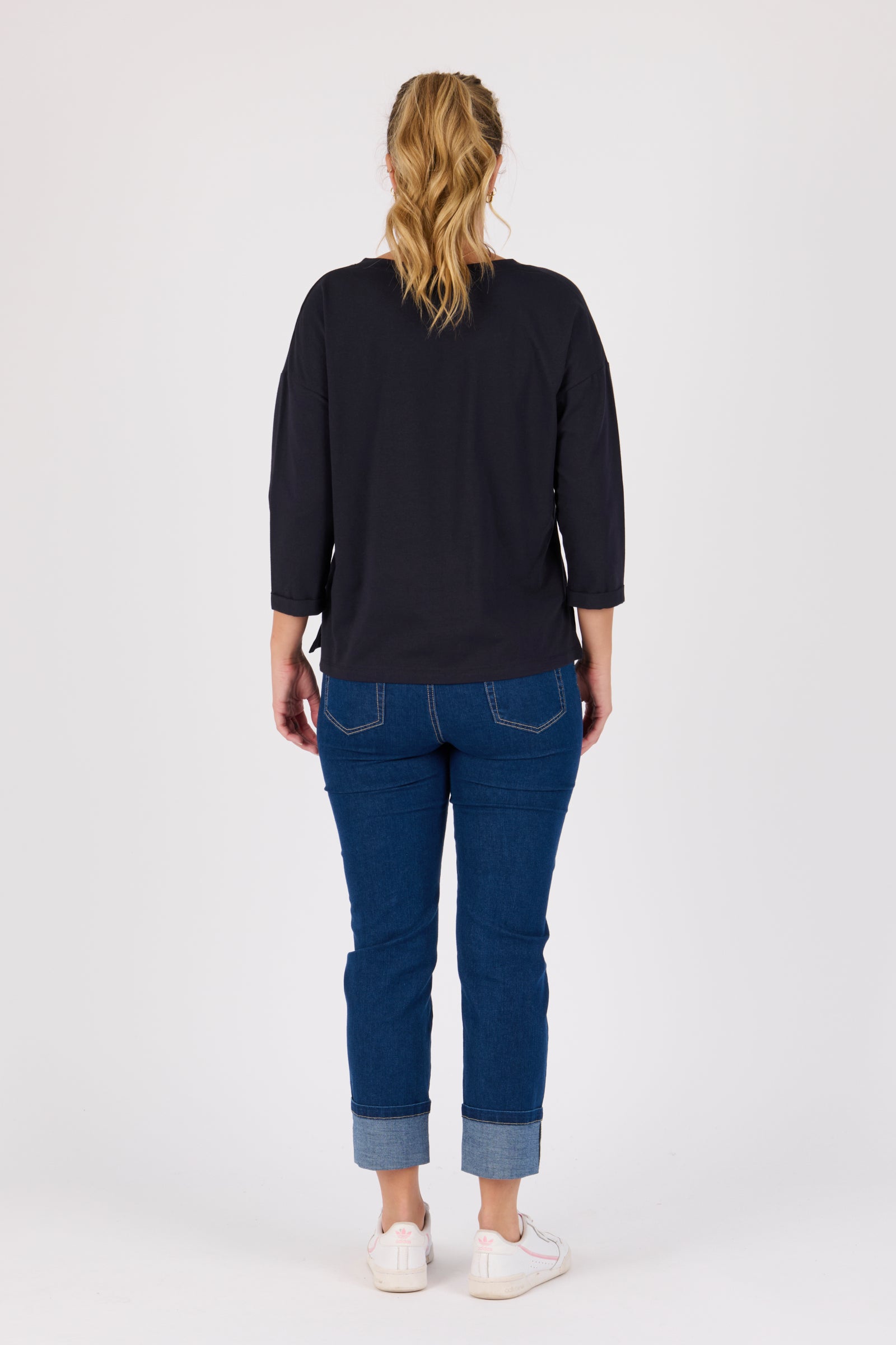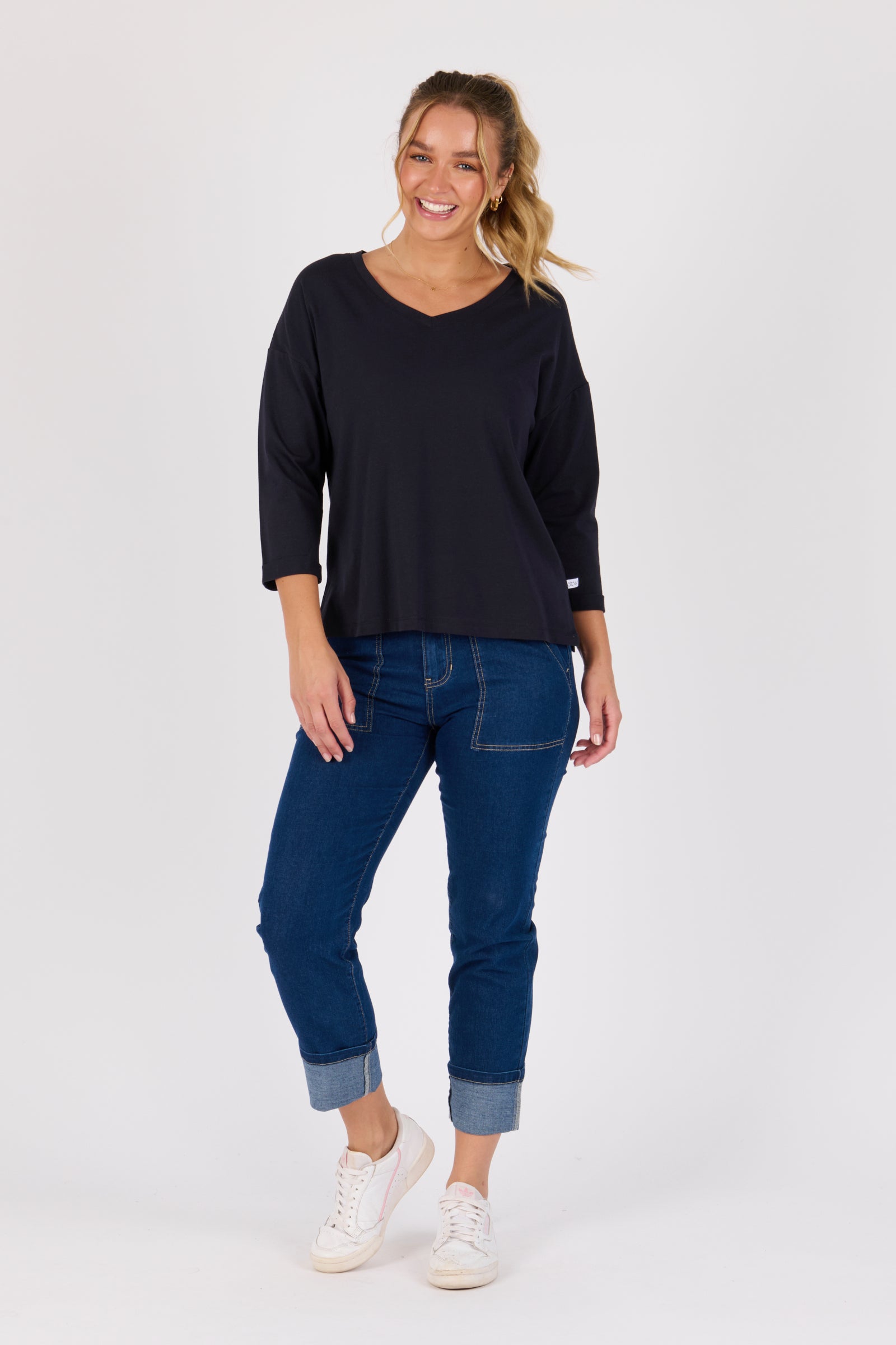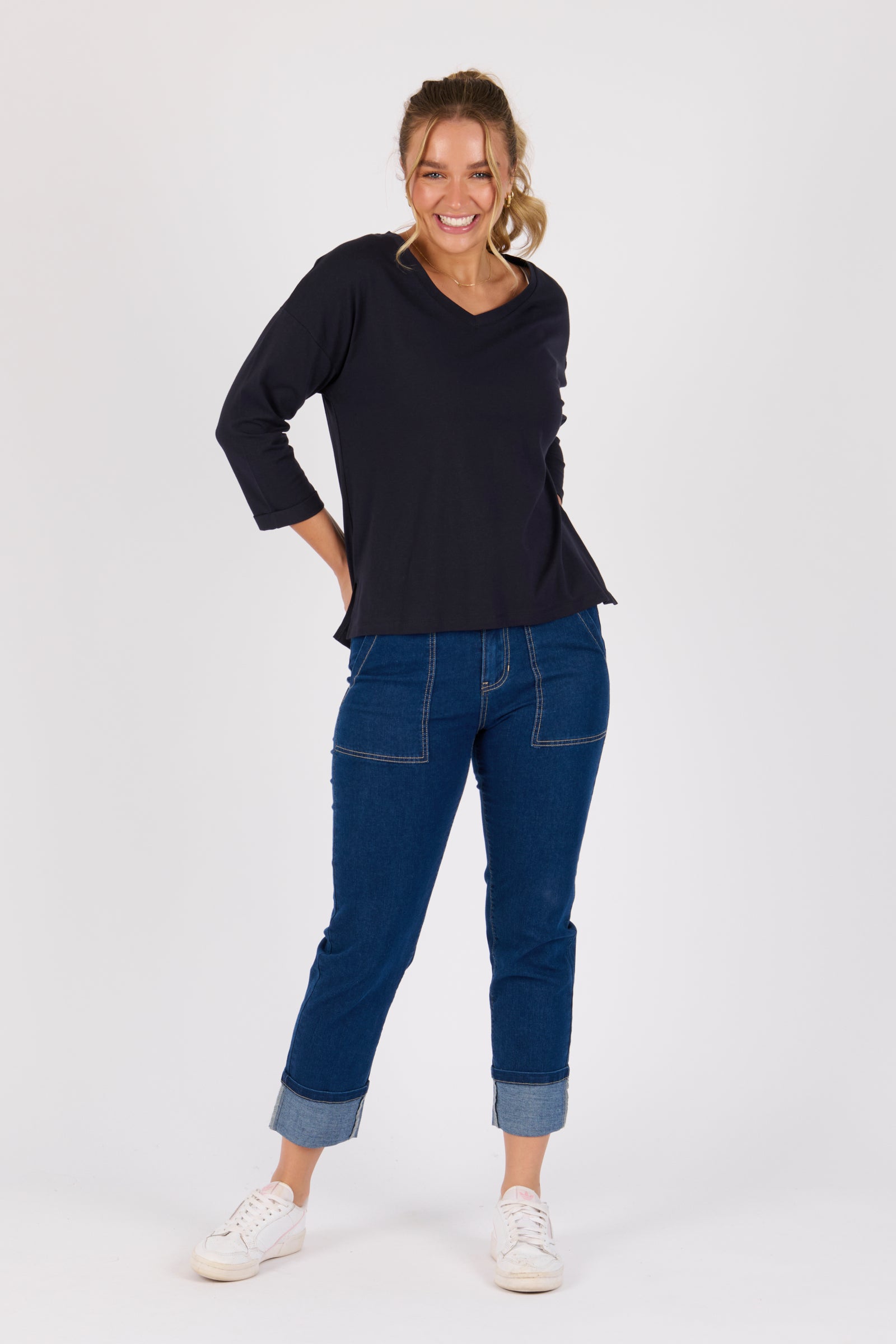 V-Neck 3/4 Sleeve Top - Blue Graphite