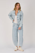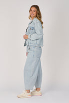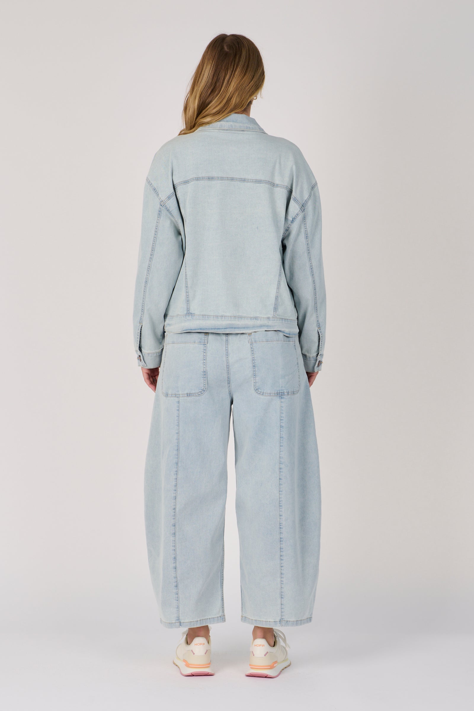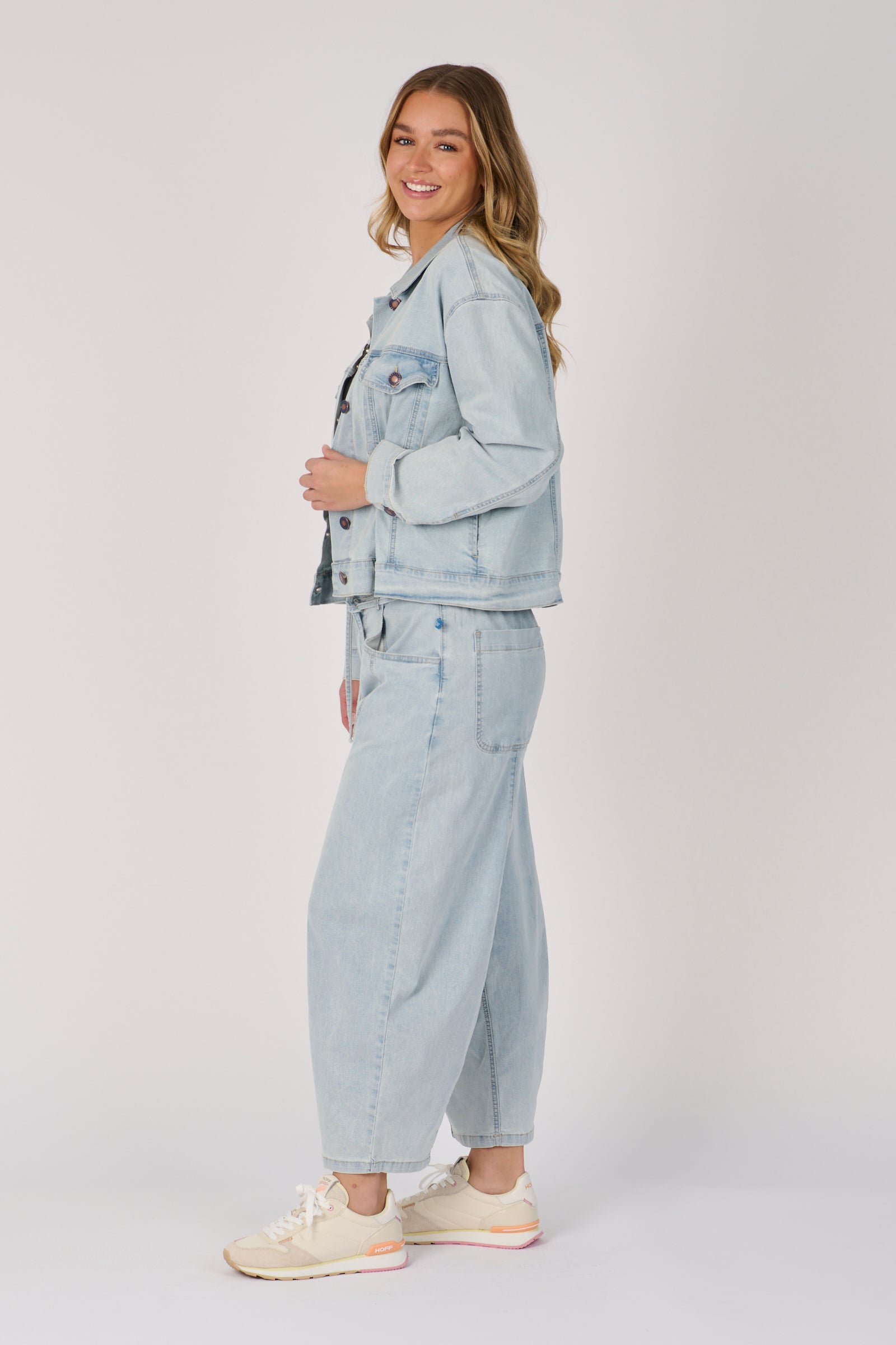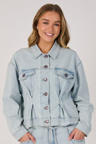 The Waist Detail Jacket in Light Blue is crafted from a soft and durable blend of 75% Cotton, 23% Polyester, and 2% Elastane for the perfect balance of structure and stretch. Featuring classic denim styling with a relaxed fit, button-through front, and adjustable waist tabs, this jacket offers effortless versatility for layering.